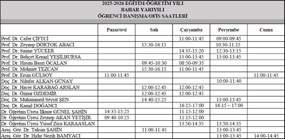Öğrenci Danışma Saatleri