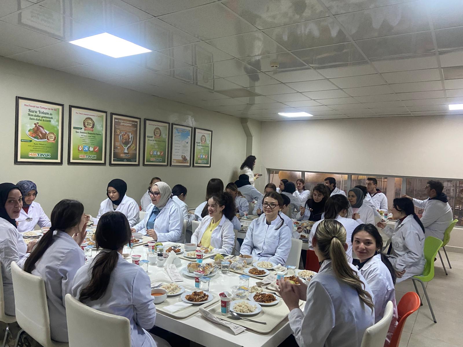 Verilen eğitimin ardından firma gezdirilerek öğrencilerimize öğle yemeği ikram edildi. Düzenlenen teknik gezide destekleri için Kurumsal İletişim Müdürü Bircan ÖZKAN ve Kalite Müdür Yardımcısı Gıda Müh. Özgür SANA’ ya teşekkür ederiz.
