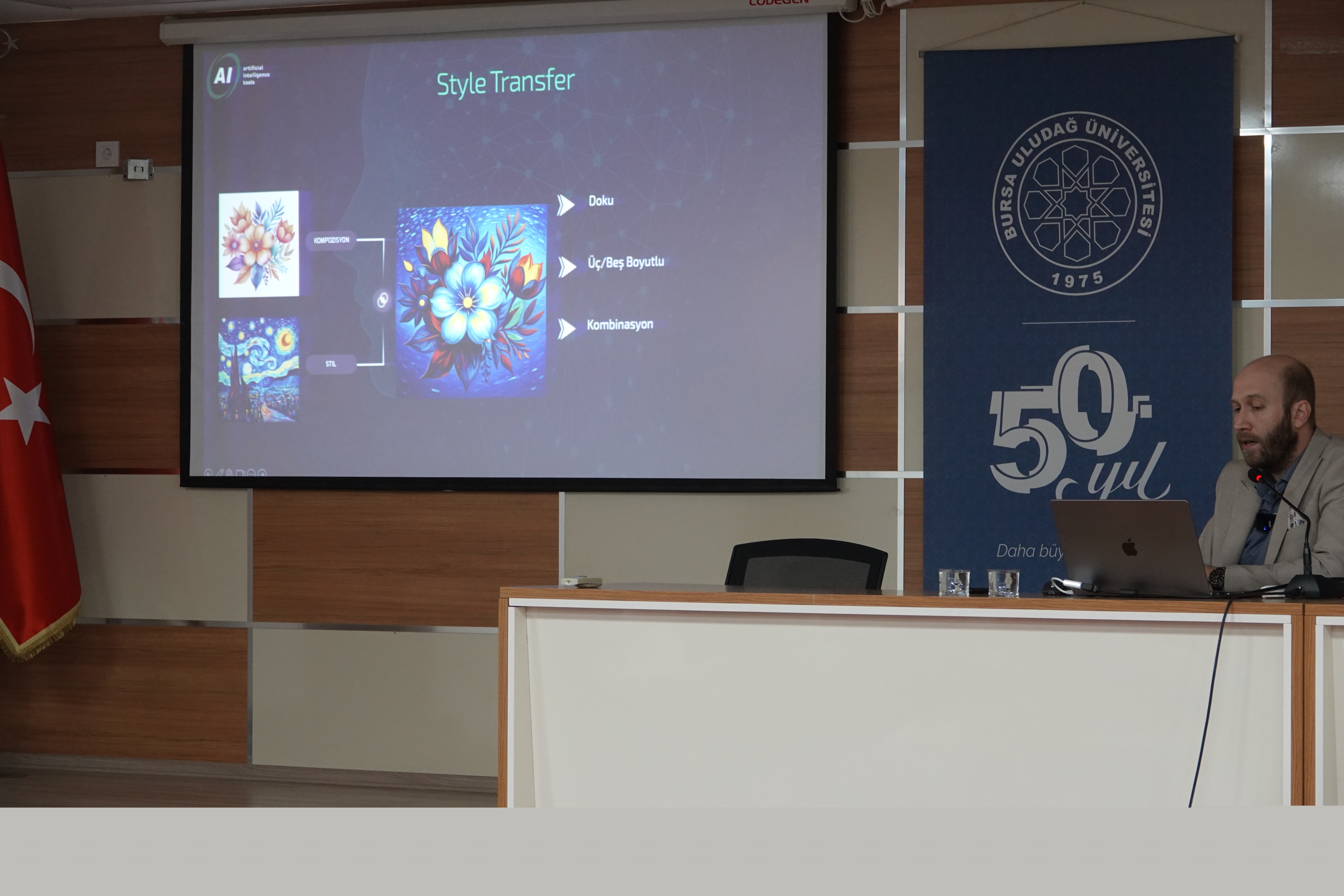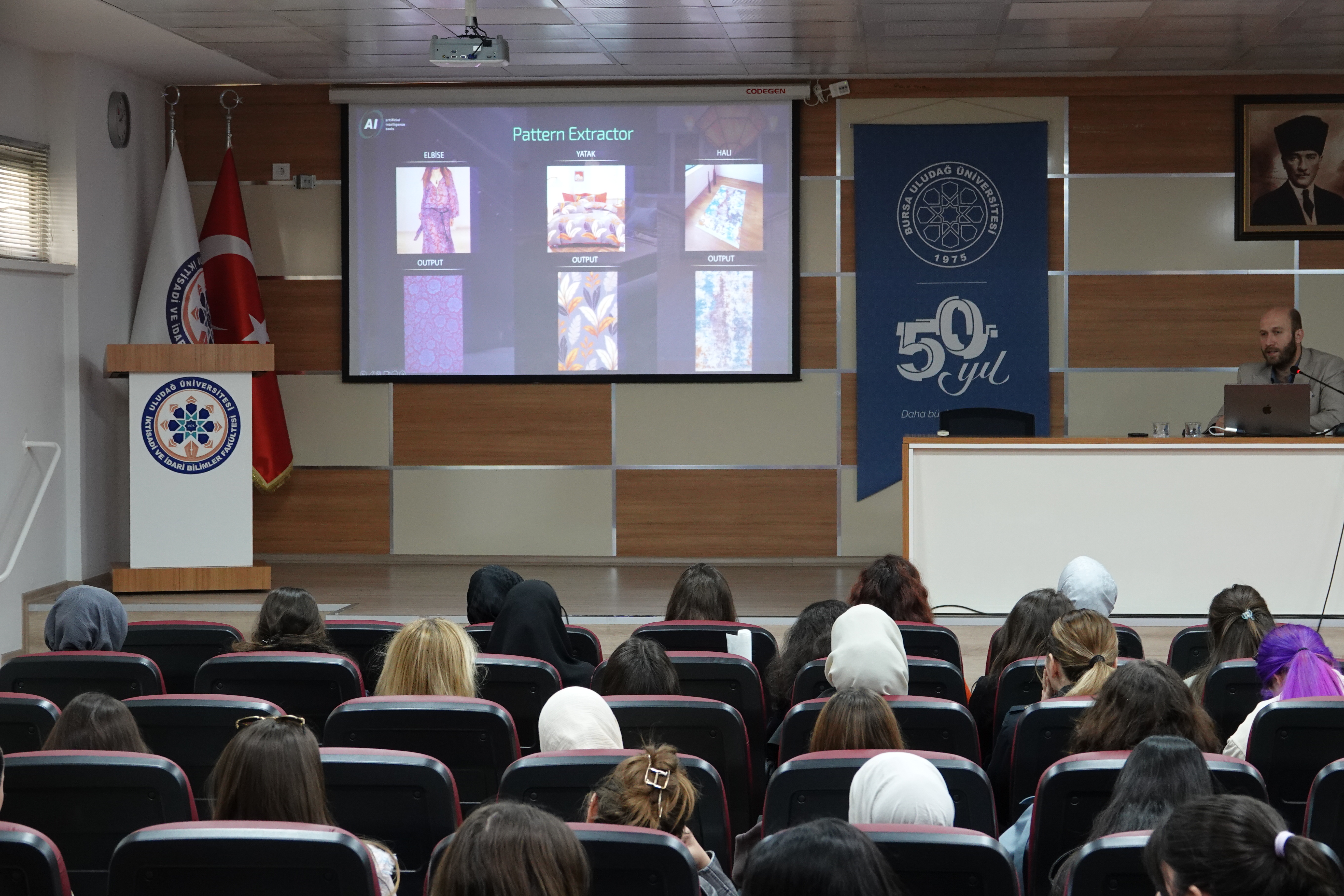 BUÜ TBMYO Tasarım Bölümü Moda Tasarım Programı Güz yarıyılı seminer programı kapsamında, 1996 yılından bu yana desen tasarım, dijital numune ve metraj baskı konularında yazılım, donanım, sarf malzeme ve teknik destek sağlayan Türkiye’nin ilk ve tek kuruluşu Bilgisayar Sis. Makine San. Tic. Ltd. firması (AIT), takım lideri Sayın Umut Savaşım Çeliker’in konuk edildiği “Moda Tasarımında Sürdürülebilirlik ve İnovasyon İçin AIT Yapay Zeka Çözümleri” konulu seminer gerçekleştirilmiştir. Seminer, AIT firma temsilcileri, Bursa Uludağ Üniversitesi TBMYO Moda Tasarım Programı öğrencilerimiz ve öğretim elemanlarımızın katılımı ile gerçekleştirilmiştir.