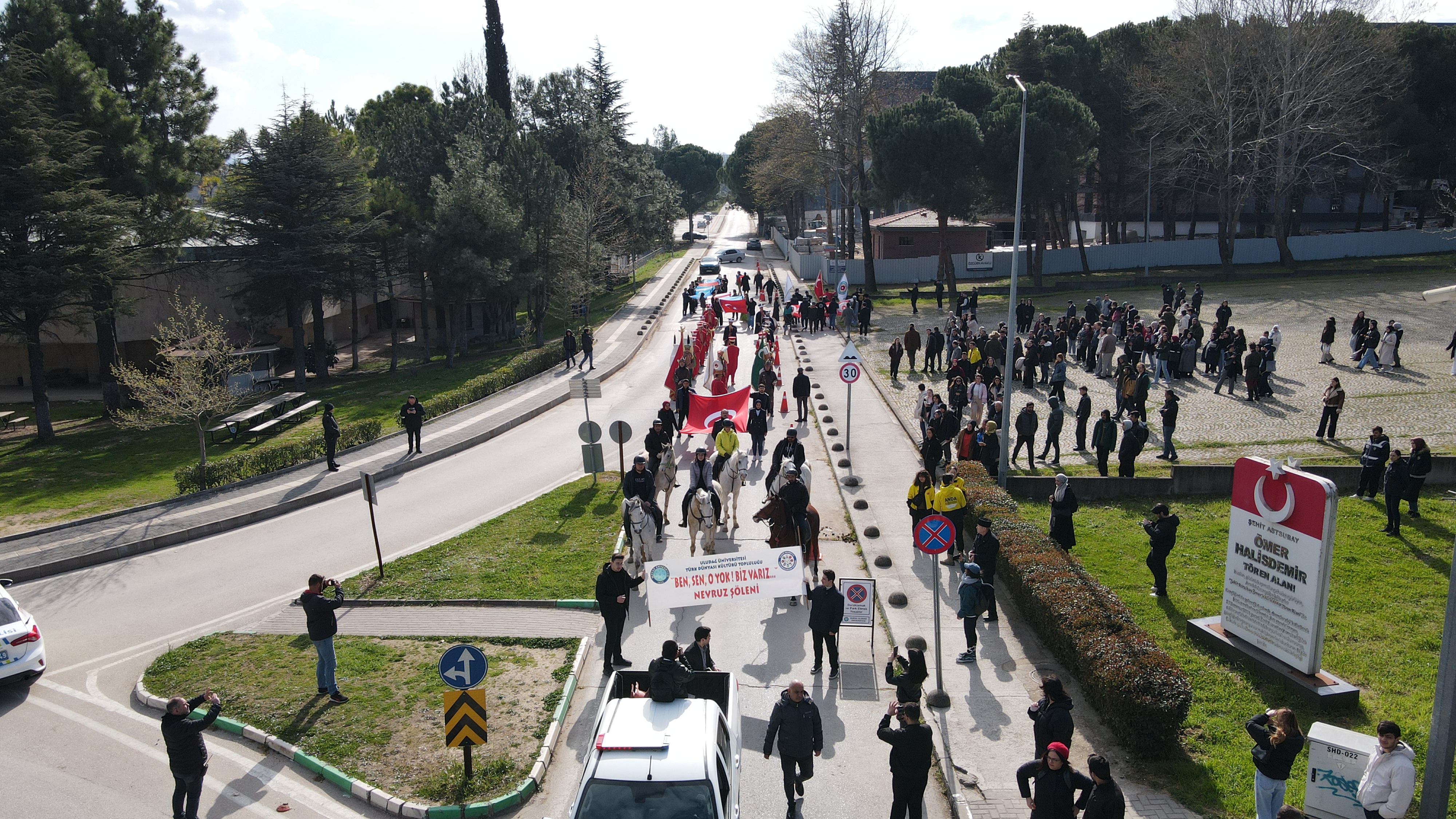 BUÜ Türk Devletleri ve Akraba Toplulukları Uygulama ve Araştırma Merkezi’nin (TÜDAM) organize ettiği ve Türk Ocağı Bursa Şubesi ile Türk Dünyası Yörük Türkmen Birliği’nin de destek verdiği etkinlik, Atatürk Anıtı önündeki mehter gösterisiyle başladı. Açılış töreninin ardından katılımcılar büyük bir kortejle programın düzenleneceği alana geldi. Etkinlikte BUÜ Rektörü Prof. Dr. Ferudun Yılmaz, Türk Ocağı Bursa Şubesi Başkanı Prof. Dr. Selçuk Kırlı, Türk Dünyası Yörük Türkmen Birliği Başkanı İrfan Tatlıoğlu ve Genel Sekreteri Cemal Akkuş, TÜDAM Müdürü Doç. Dr. Fatih Gürses, Üniversite Genel Sekreteri Mehmet Aydemir ile akademik ve idari personel de hazır bulundu. Açılış töreninin ardından Nevruz’un sembolik ritüelleri ve öğrencilerin hazırladığı çeşitli etkinlikler katılımcılara keyifli anlar yaşattı. Azerbaycanlı öğrencilerin hazırladığı semeni sepetini Rektör Yılmaz’a takdim etmelerinin ardından nevruz ateşinden atlama ve demir dövme gelenekleri de yerine getirildiği program, protokolün Mediko Binası önündeki öğrenci topluluk stantlarını ziyaret etmesiyle sonra erdi.