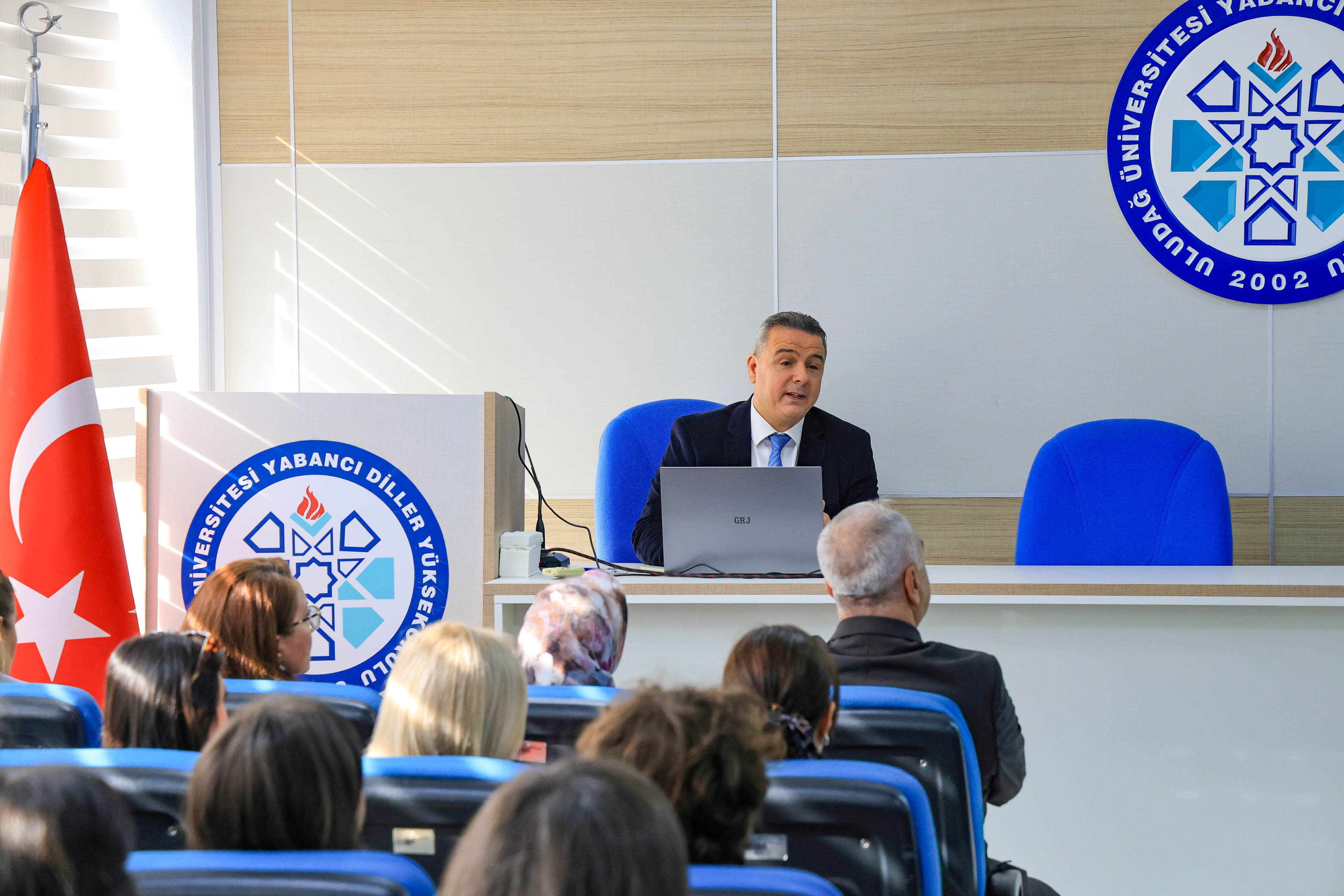 Yüksekokul Müdür Yardımcısı Doç. Dr. Mehmet Doğan ise EAQUALS akreditasyonunun teknik detayları ve kurumun uluslararası saygınlığı hakkında bilgiler paylaştı. Türkiye’de bu akreditasyona sahip sınırlı sayıdaki devlet üniversitesinden biri olduklarını hatırlatan Doğan; yönetimden ölçme-değerlendirmeye kadar 12 ana kategoride yapılan titiz denetimlerden tam not aldıklarını belirtti.