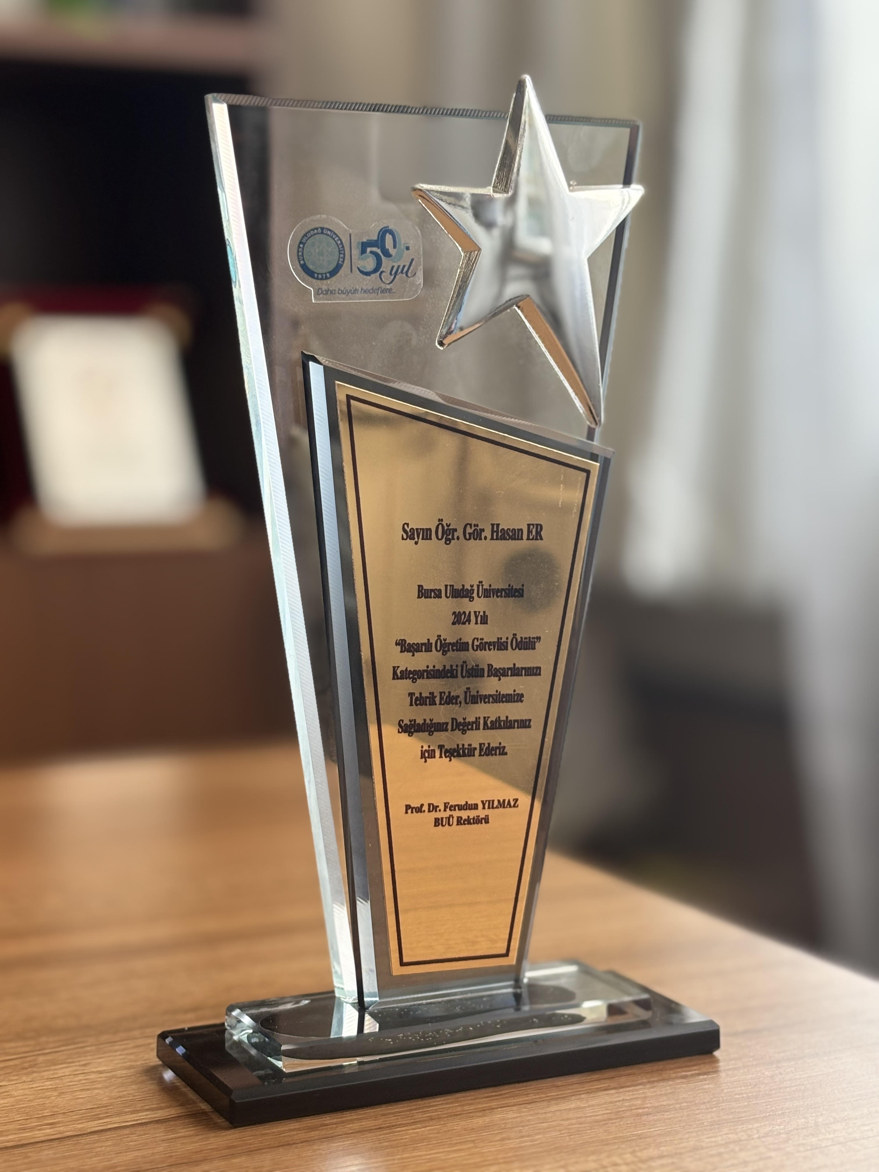Üniversitemiz Ar-Ge Koordinatörlüğü tarafından organize edilen ve BUÜ Rektörü Prof. Dr. Ferudun Yılmaz, Rektör Yardımcıları, dekanlar, müdürler ile çok sayıda akademik ve idari personelin katılımıyla gerçekleşen törende, “En Başarılı Öğretim Görevlisi” ödülü yüksekokulumuz öğretim görevlilerinden Hasan Er’e verildi.