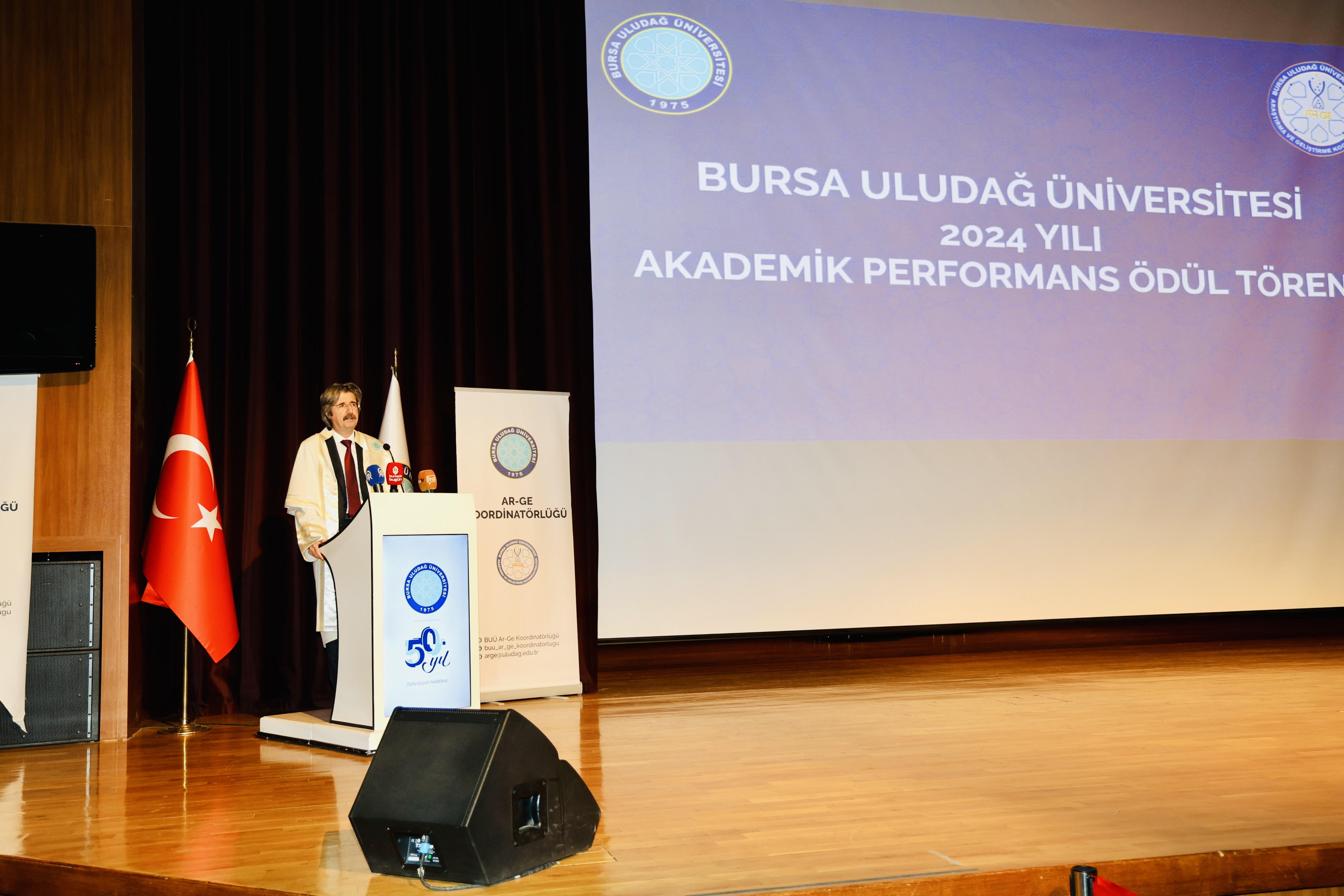 Rektör Prof. Dr. Ferudun Yılmaz törende yaptığı konuşmada, BUÜ’nün “Araştırma Üniversitesi” kimliğini güçlendirme hedefini vurgulayarak, akademik üretkenliği destekleyen bu ödül programının üniversite genelinde bilimsel motivasyonu artırdığını belirtti.