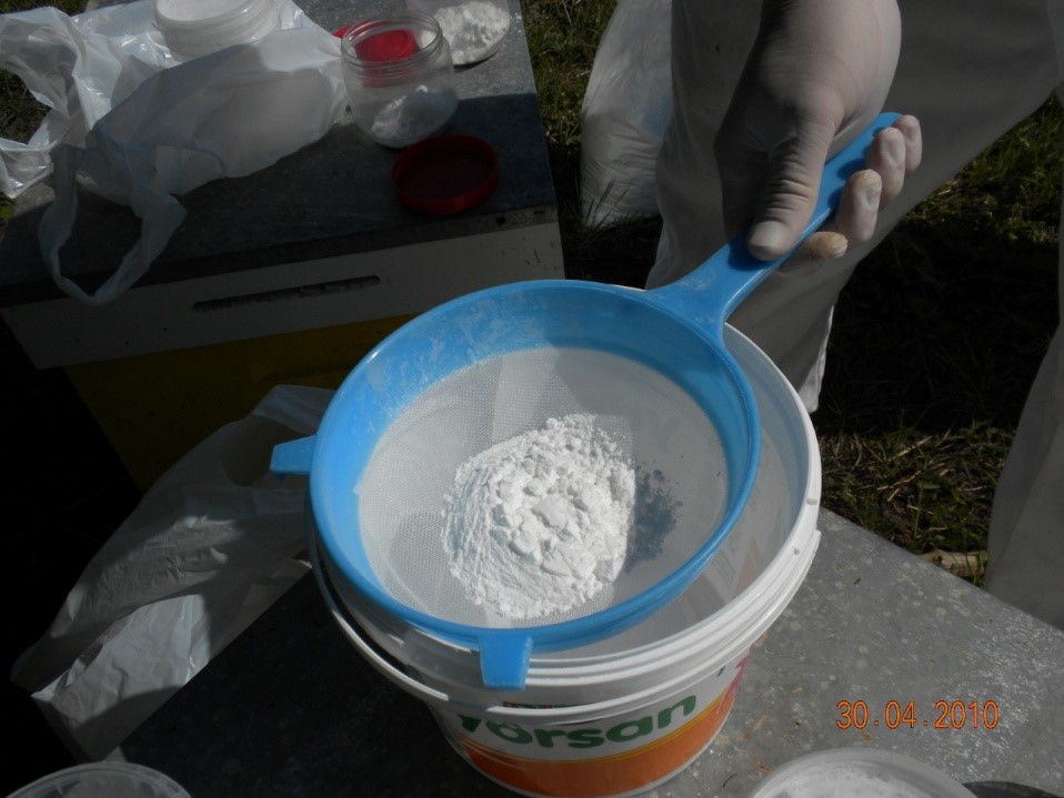Bu yüzden bu sorunu aşabilmek için %94 doğru sonuçlar verebilen pudra şekeri yöntemini geliştirdik ve her yıl kovanlarda varroa seviyesini belirlemede uyguluyoruz (Çakmak vd. 2011, Seven Çakmak vd. 2017).