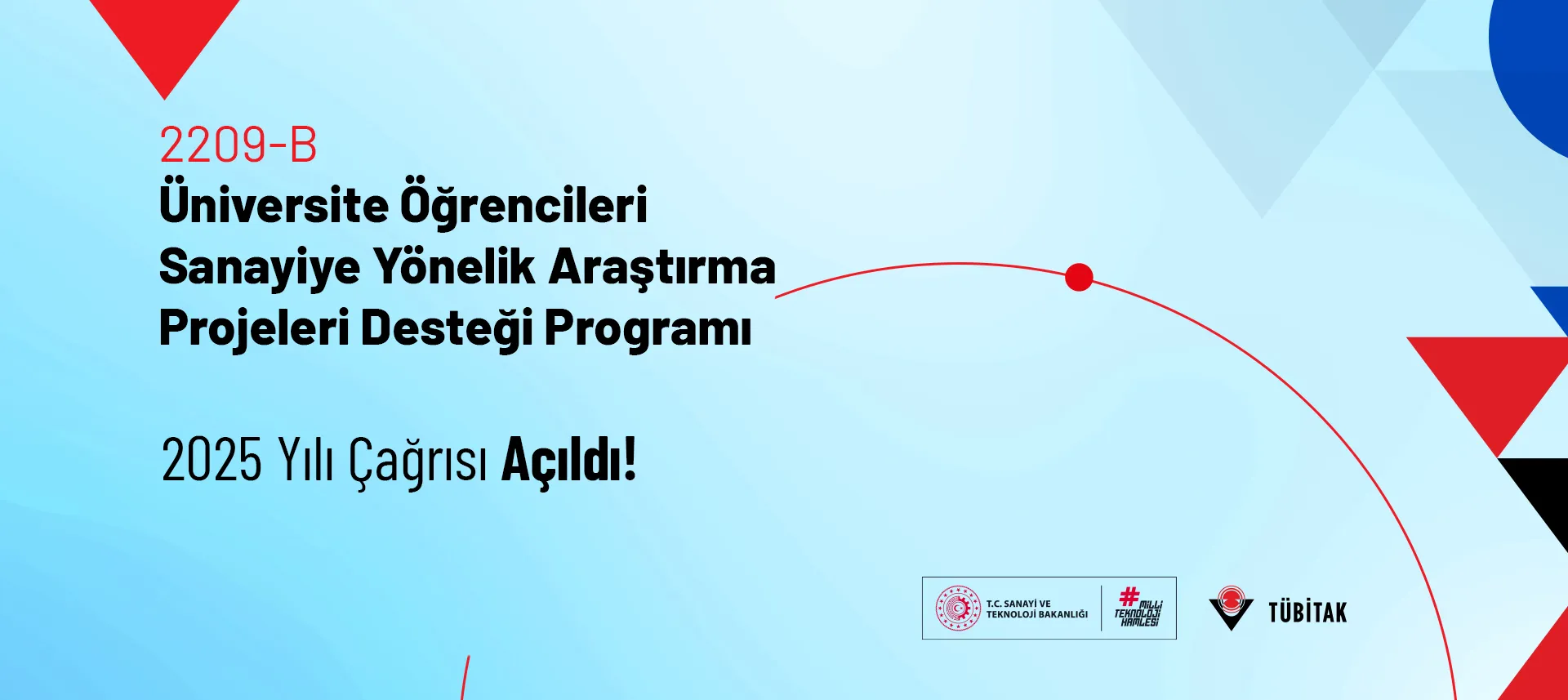 2209-B Üniversite Öğrencileri Sanayiye Yönelik Araştırma Projeleri Desteği Programı 2025 yılı çağrısı 13 Ekim 2025 tarihi itibarıyla başvuruya açılmıştır ve başvurular 12 Kasım 2025 tarihine kadar devam edecektir.