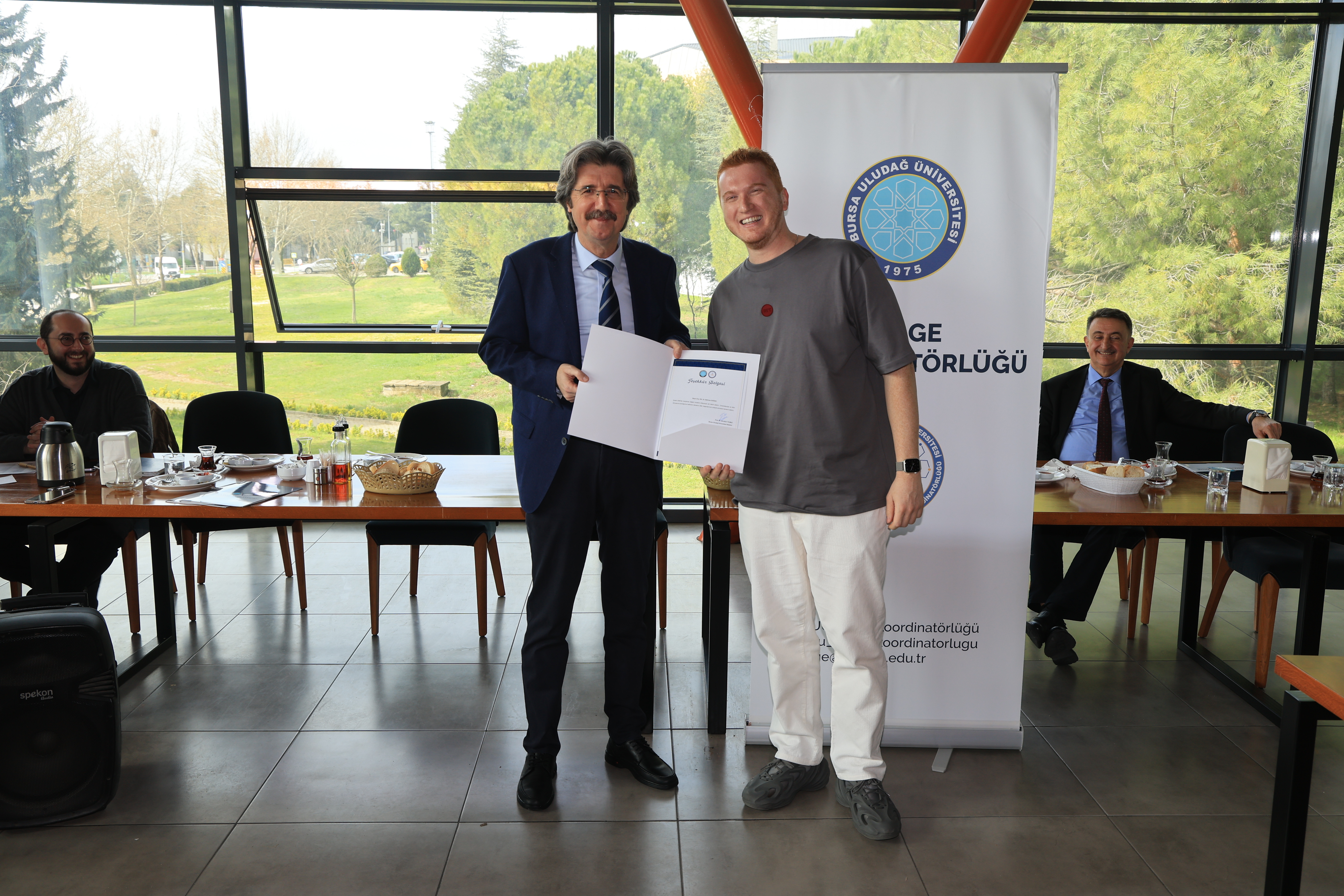 Bursa Ticaret ve Sanayi Odası’nın (BTSO) destekleriyle düzenlenen etkinlikte; Rektör Prof. Dr. Ferudun Yılmaz, Rektör Yardımcıları Prof. Dr. İrfan Kırıştıoğlu, Prof. Dr. Zekeriyya Arı, Prof. Dr. Cafer Çiftci, Genel Sekreter Mehmet Aydemir ve Ar-Ge Koordinatörümüz Prof. Dr. Esra Karaca, akademisyenlerle bir araya gelerek başarılarından dolayı her birini tebrik etti.