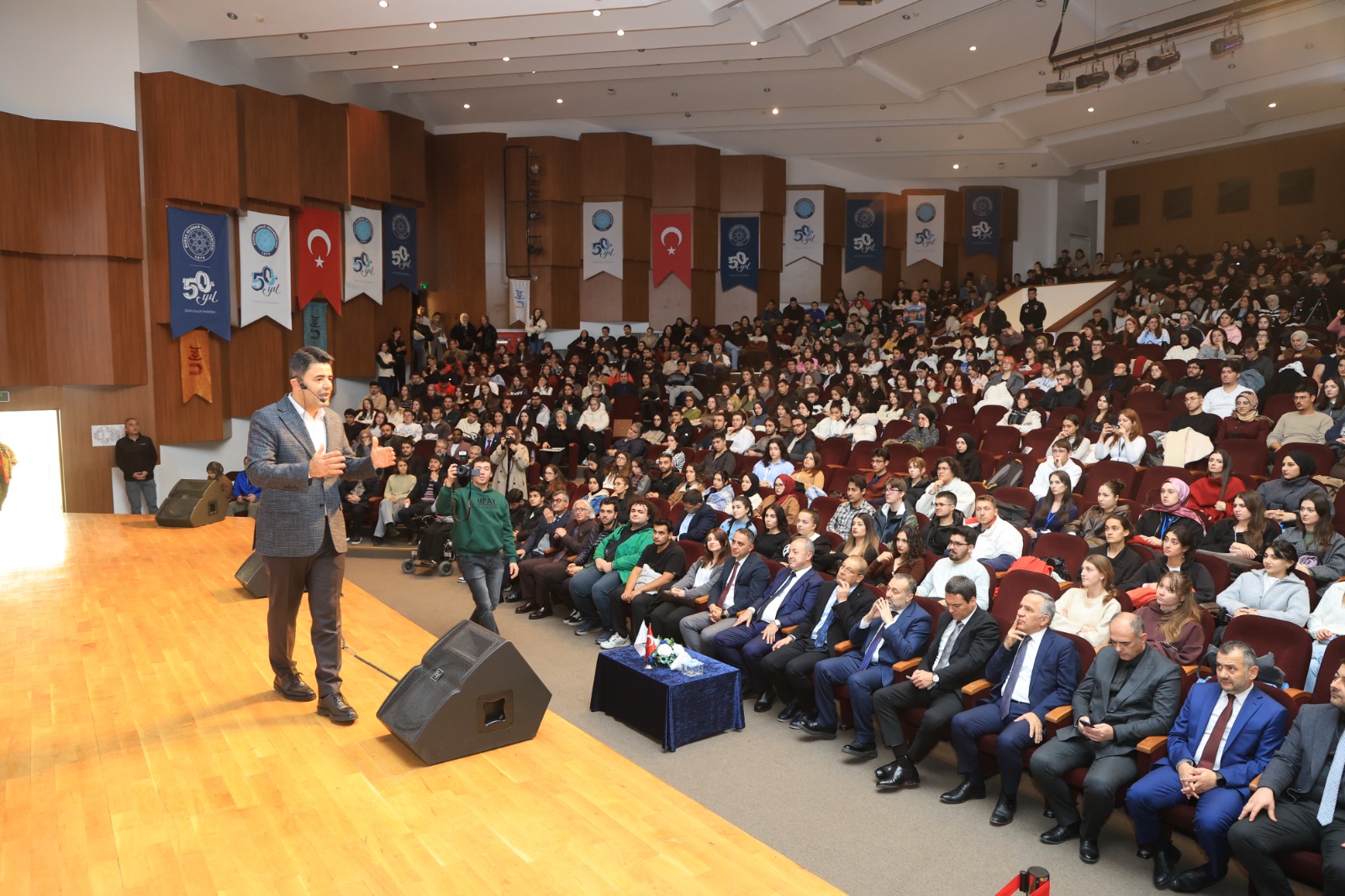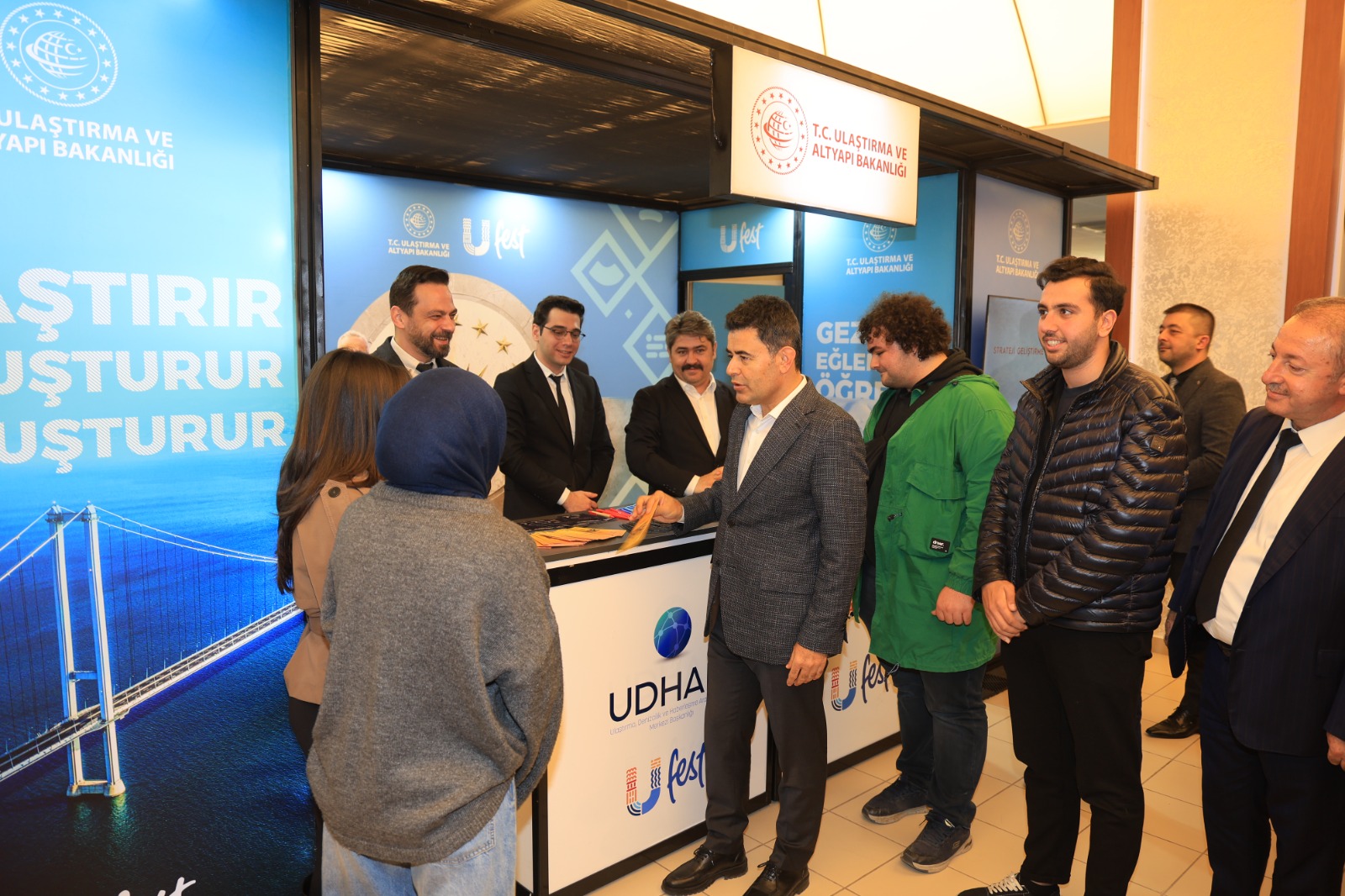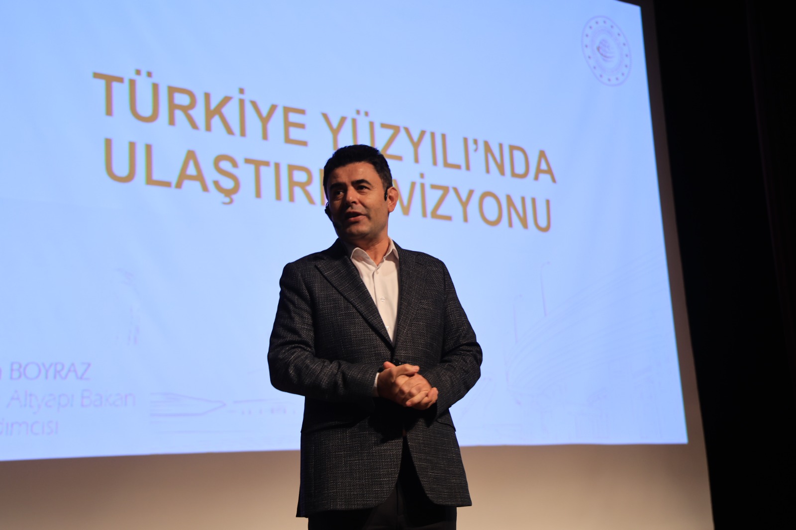 Ulaşım Festivali (UFEST) kapsamında düzenlenen "Türkiye Yüzyılı'nda Ulaştırma Vizyonu" başlıklı söyleşi, Prof. Dr. Mete Cengiz Kültür Merkezinde geniş bir öğrenci katılımıyla gerçekleştirildi. Programın baş konuğu olan Ulaştırma ve Altyapı Bakan Yardımcısı Osman Boyraz, üniversiteli gençlere Türkiye’nin stratejik yatırımlarını anlatırken, BUÜ’nün dinamik kitlesine gelecek vizyonu anlattı.