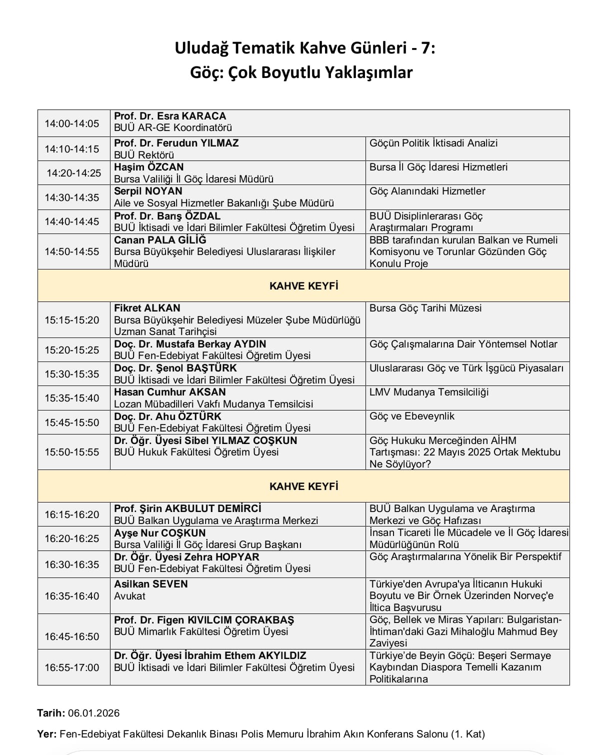 ULUDAĞ TEMATİK KAHVE GÜNLERİ -7: GÖÇ: ÇOK BOYUTLU YAKLAŞIMLAR