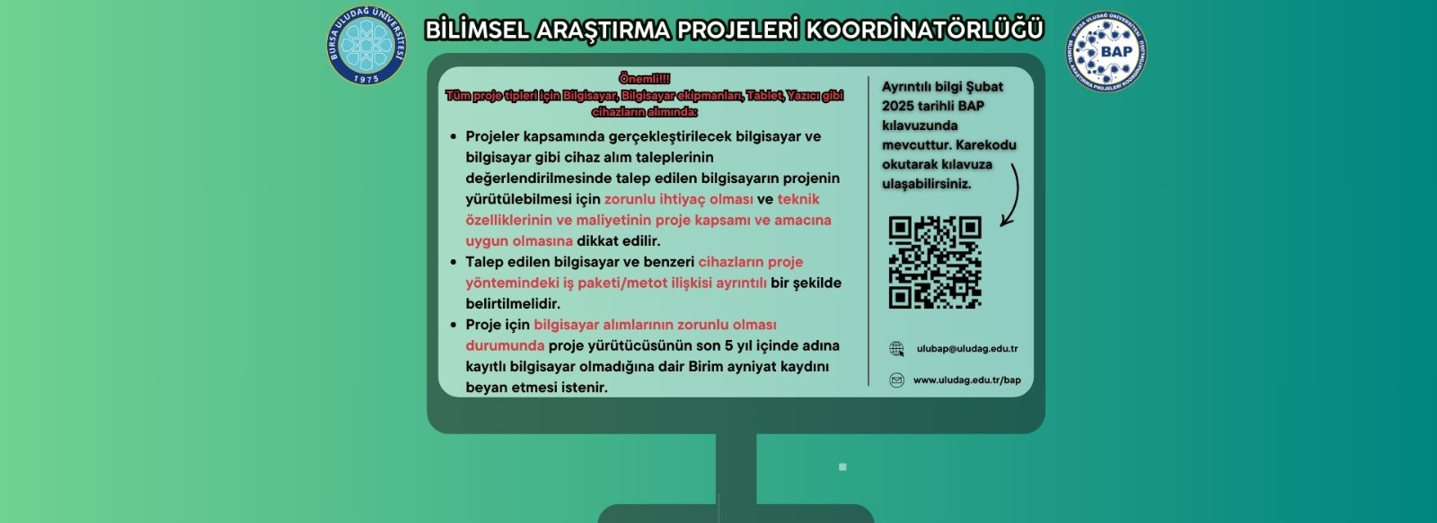 Projeler kapsamında gerçekleştirilecek bilgisayar ve bilgisayar gibi cihaz alım taleplerinin değerlendirilmesinde talep edilen bilgisayarın projenin yürütülebilmesi için zorunlu ihtiyaç olması ve teknik özelliklerinin ve maliyetinin proje kapsamı ve amacına uygun olmasına dikkat edilir.