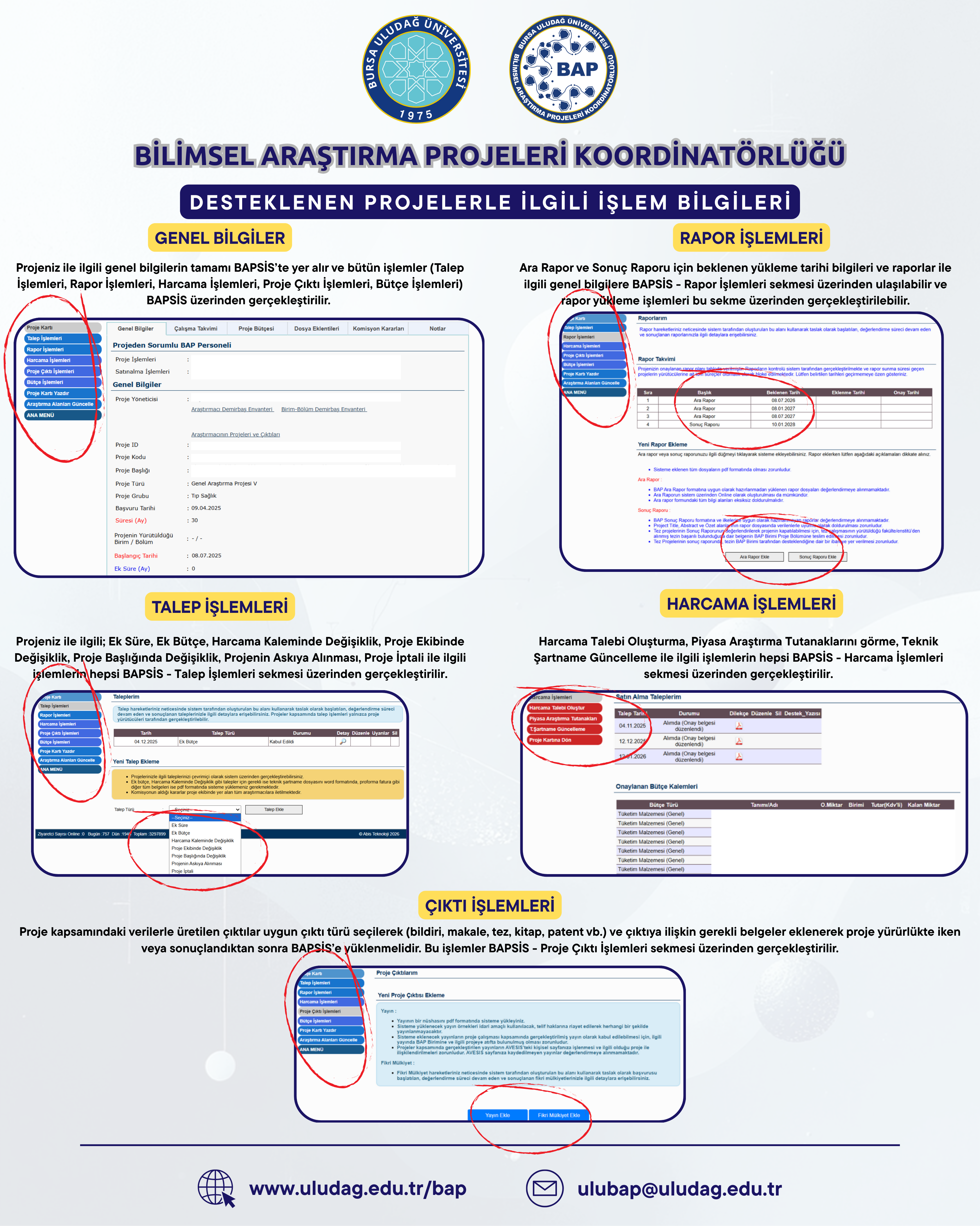 DESTEKLENEN PROJELERLE İLGİLİ İŞLEM BİLGİLERİ