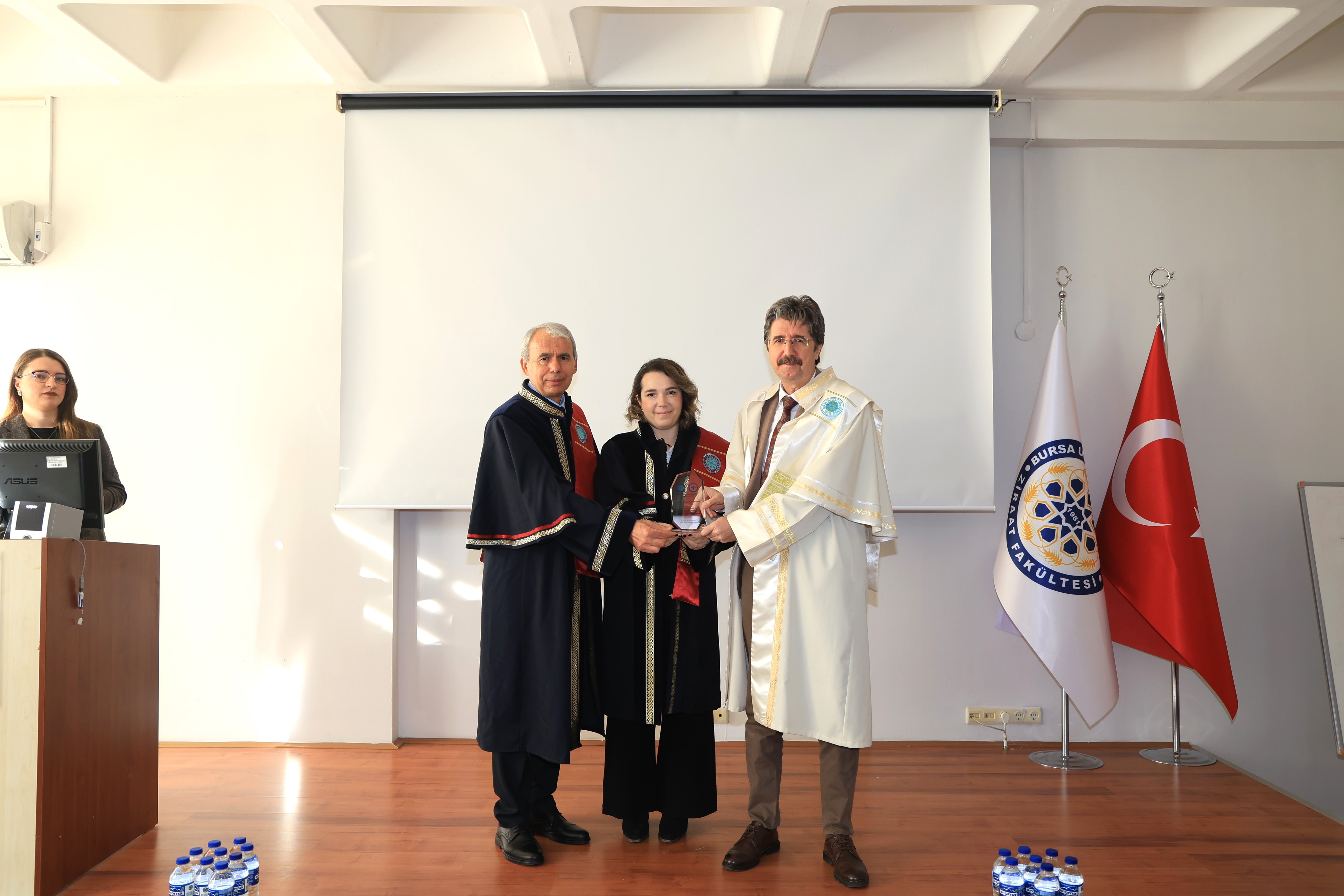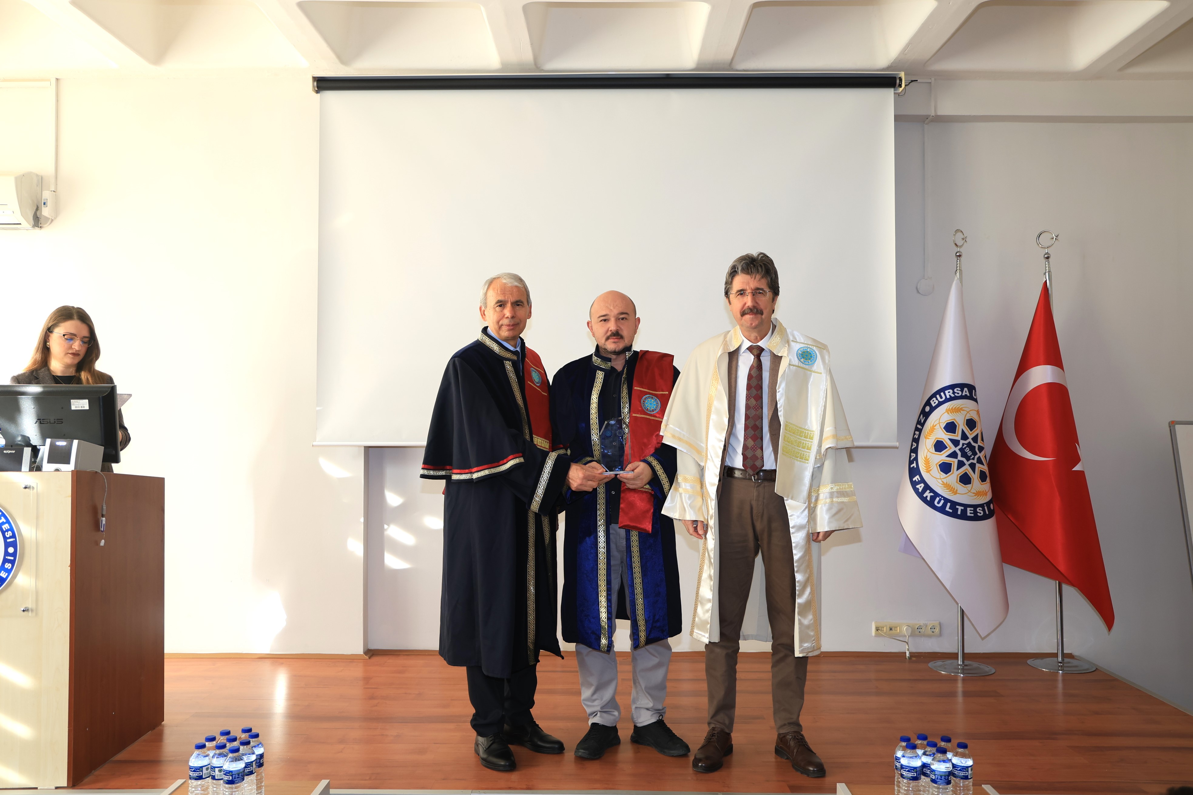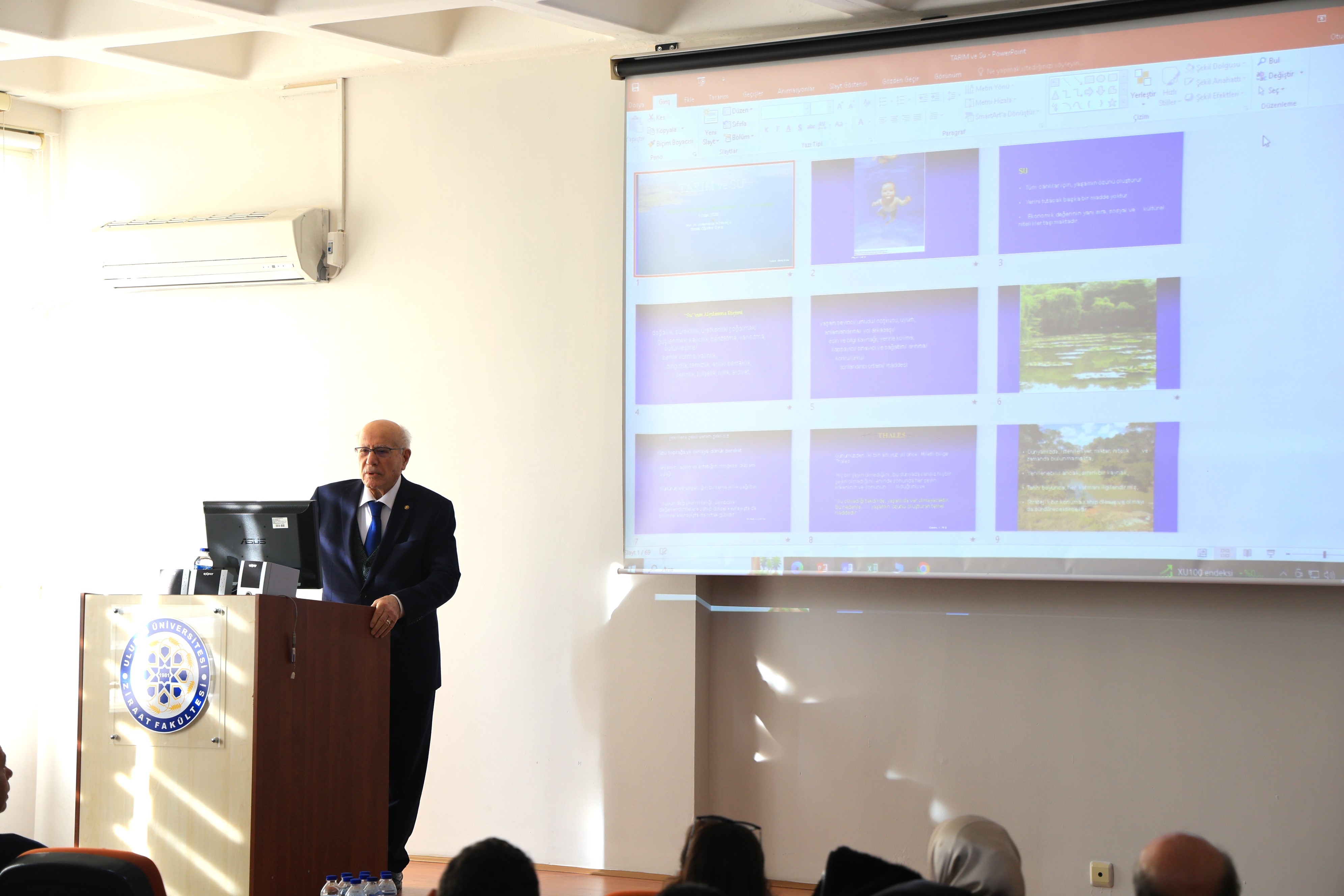 Açılış konuşmalarının ardından emekli öğretim üyesi Prof. Dr. Abdurrahim Korukçu, "Tarım ve Su" başlıklı bir konferans sunumu gerçekleştirerek, tarımsal sulama teknolojileri ve su yönetiminin stratejik önemi hakkında katılımcıları bilgilendirdi. Törenin sonunda, akademik kadroda unvanı yükselen ve profesörlük ile doçentlik kadrolarına hak kazanan öğretim üyelerine plaketleri takdim edildi. Etkinlik, toplu fotoğraf çekimi ve fakülte girişindeki ikramlarla sona erdi.