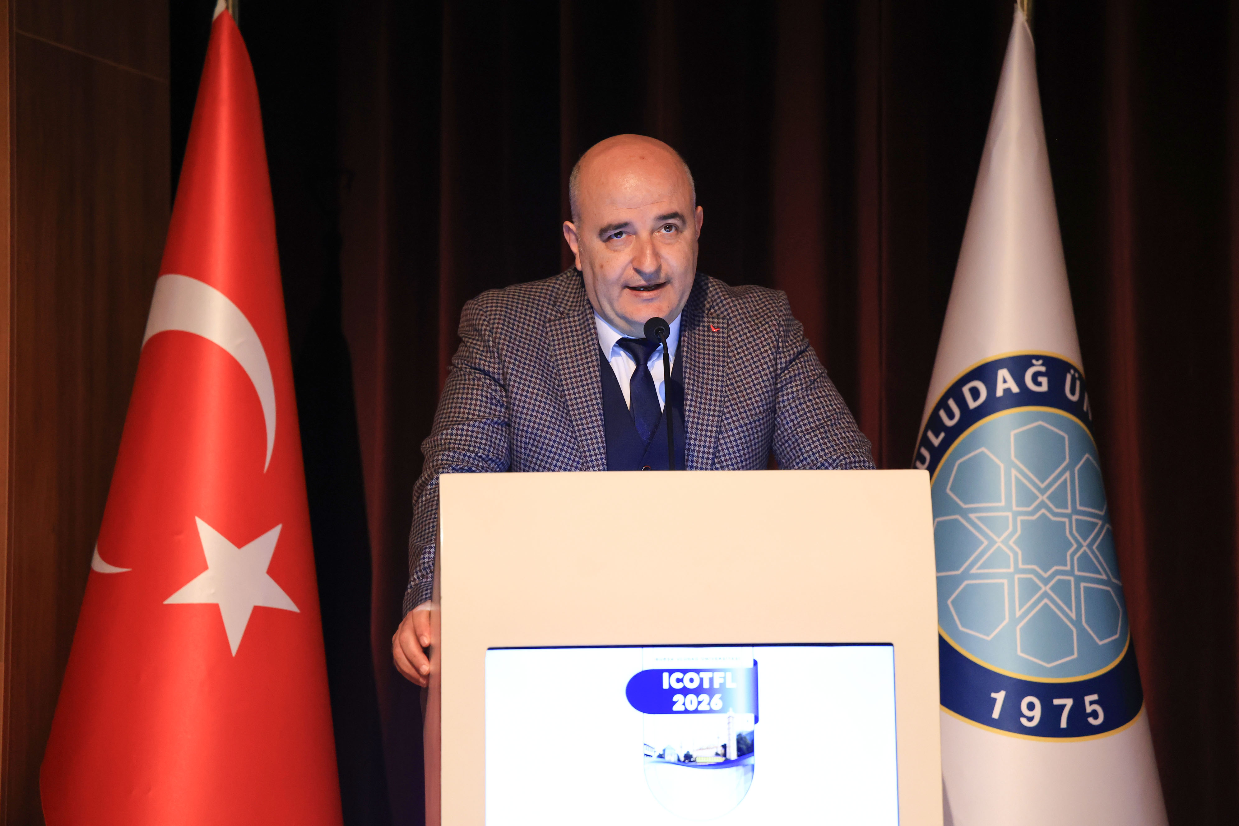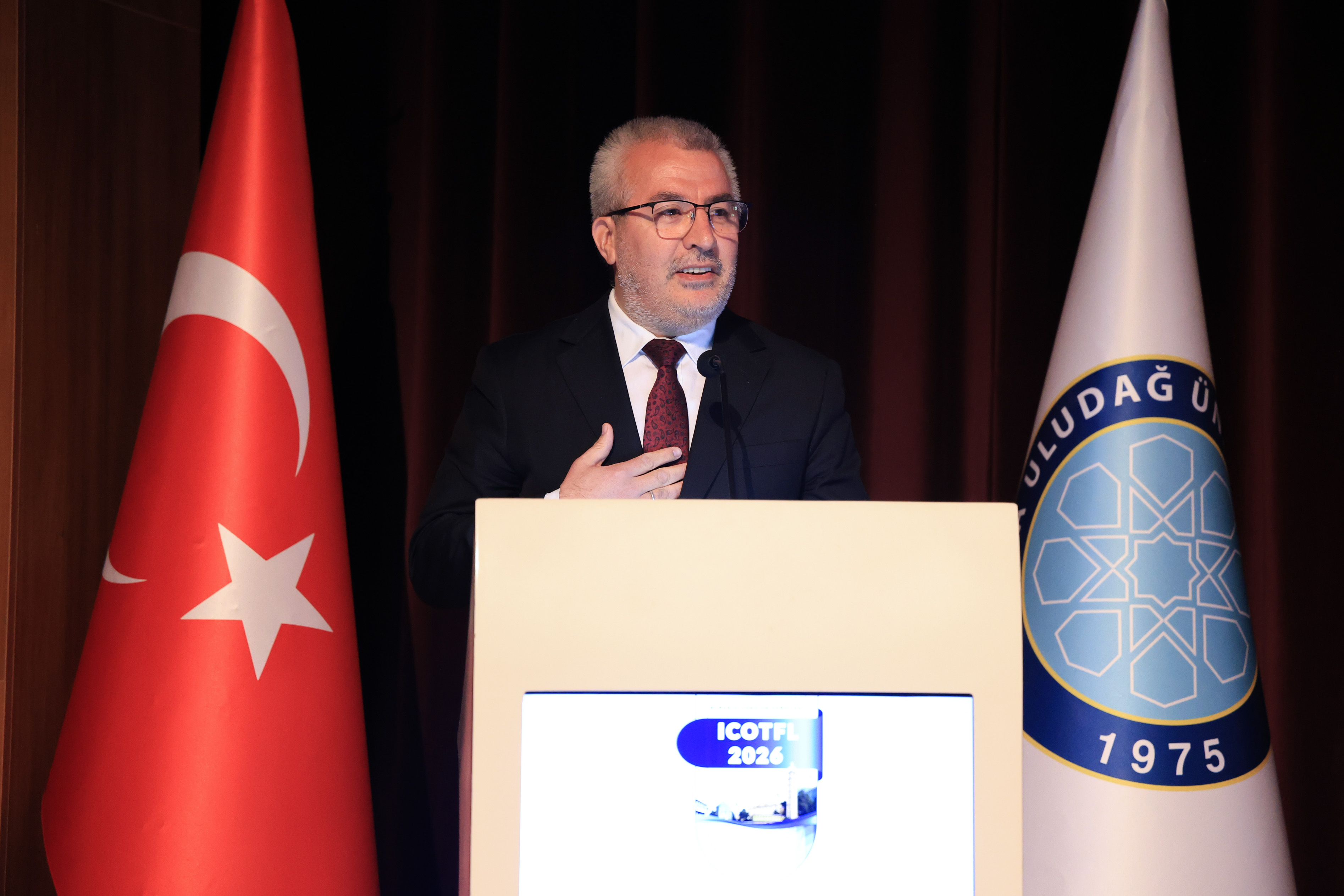 Kongre Yürütme Kurulu Başkanı Prof. Dr. Alparslan Okur ise Türkçenin dünya genelindeki yaygınlığına dikkat çekti. 11 yıl önce başlatılan bu bilimsel yolculuğun Türkçeyi bir dünya dili yapma ülküsüyle sürdüğünü belirtti. Günümüzde sadece dijital bir nesille değil, her adımı yapay zekâya sorgulatan "dijital ötesi" bir kuşakla karşı karşıya olunduğunu ifade eden Okur, bu yeni nesle yönelik dil eğitiminde teknolojinin hızına ayak uydurmanın akademik bir zorunluluk haline geldiğini vurguladı. Herhangi bir ticari kaygı gütmeden, tamamen Türkçeye hizmet etme gayesiyle hareket ettiklerini dile getiren Okur, kongrenin ev sahibi BUÜ’ye ve sürece katkı sunan tüm paydaşlara teşekkürlerini sundu.