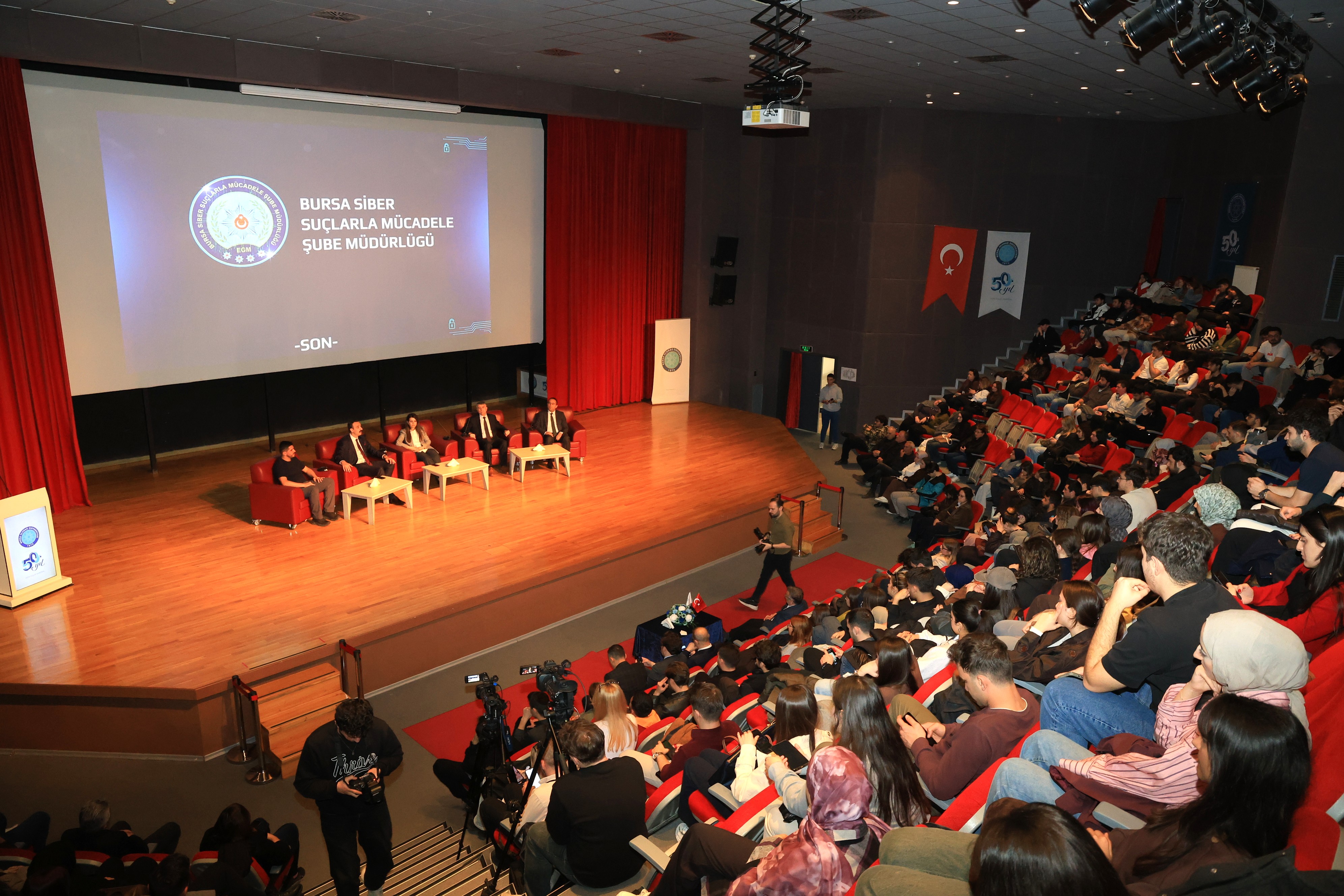 Prof. Dr. Mete Cengiz Kültür Merkezinde gerçekleştirilen etkinlikte, son dönemde özellikle gençleri hedef alan IBAN kiralama yöntemi, suç örgütleri tarafından nasıl kullanıldığı ve bu yöntemin yol açabileceği hukuki sorumluluklar konuşuldu. Programda BUÜ Rektör Yardımcısı Prof. Dr. Zekeriyya Arı, Bursa Cumhuriyet Başsavcı Vekili Zafer Birinci, Bursa Cumhuriyet Başsavcı Vekili Aşiyan Alkan Aktaş, Bursa Cumhuriyet Başsavcı Vekili Mahmut Akgöl, Cumhuriyet Savcısı Murat Avcu, Cumhuriyet Savcısı Birgivi Dertli, Üniversite Genel Sekreteri Mehmet Aydemir, Komiser Burak Kurt ve Polis Memuru Zekeriya Değirmen konuşmacı olarak yer aldı.