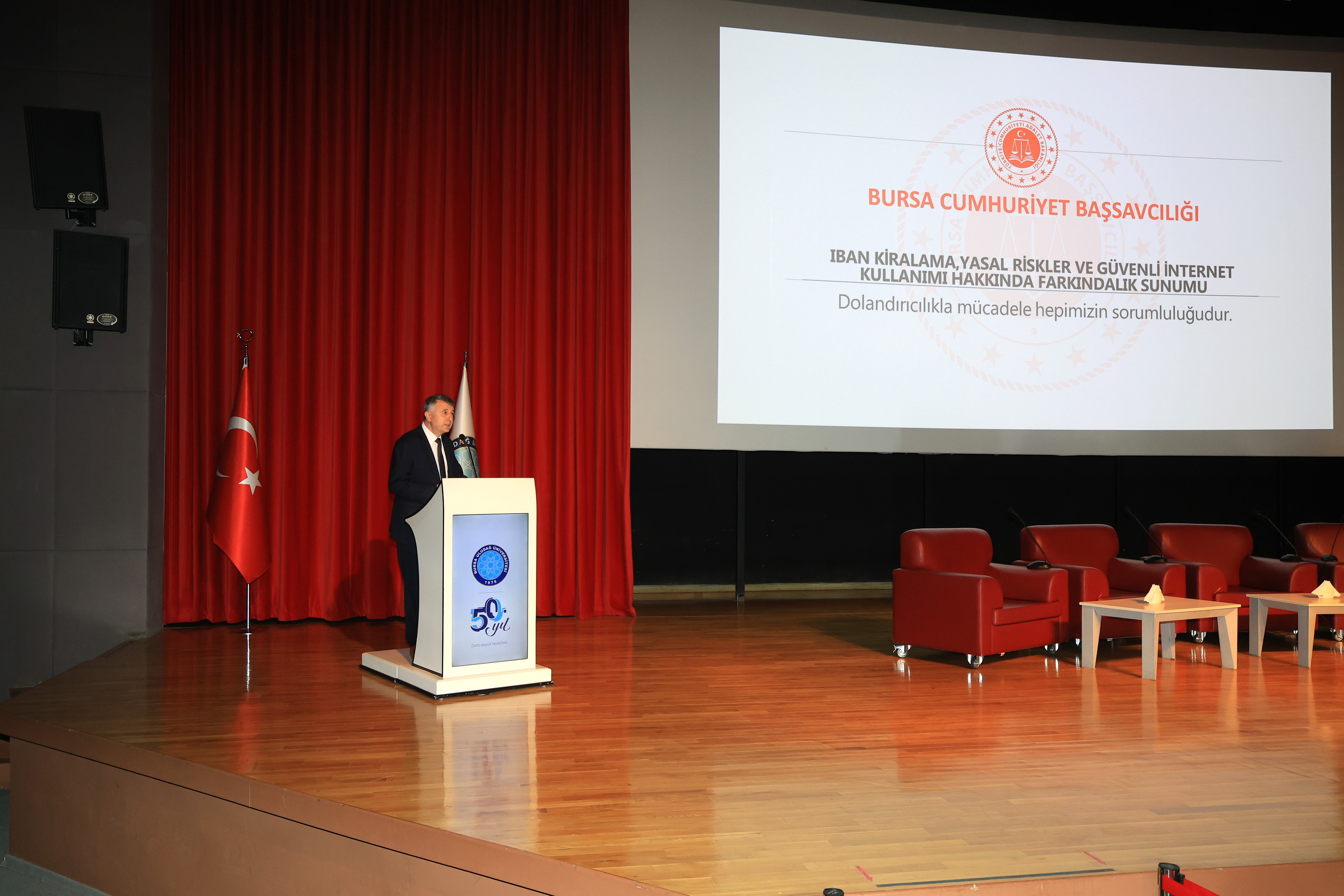 Bursa Uludağ Üniversitesinde (BUÜ) dolandırıcılık suçlarına karşı farkındalık oluşturmak amacıyla 'IBAN Kiralama, Yasal Riskler ve Güvenli İnternet Kullanımı' konulu seminer gerçekleştirildi. Etkinlikte, gençlerin hedef alındığı IBAN kiralama yöntemi ve dolandırıcılığa karşı alınacak tedbirler hakkında bilgiler paylaşıldı.
