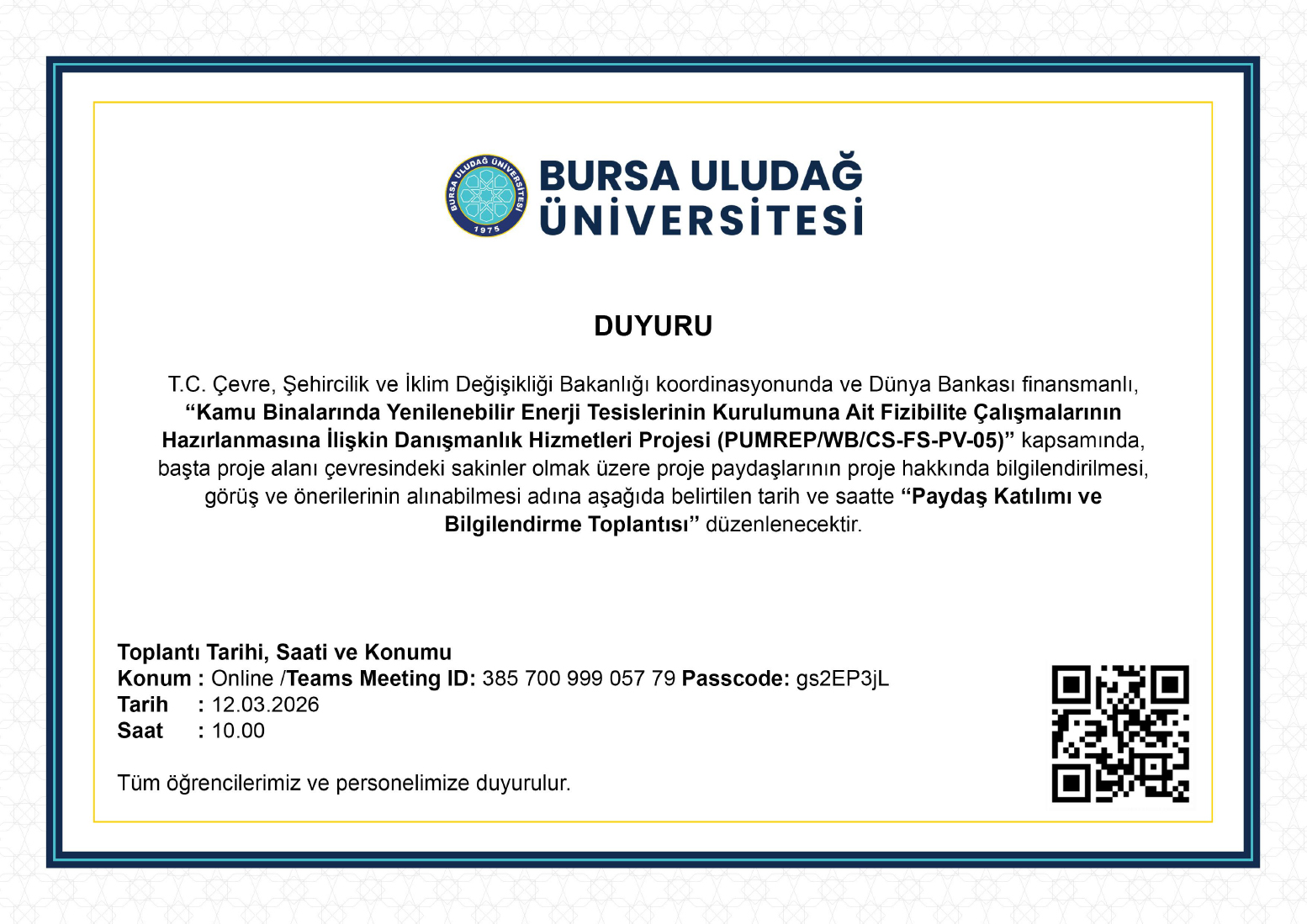 BUÜ Otopark Tipi Güneş Enerjisi Santrali Projesi ÇSYP ve Paydaş Katılım Toplantısı