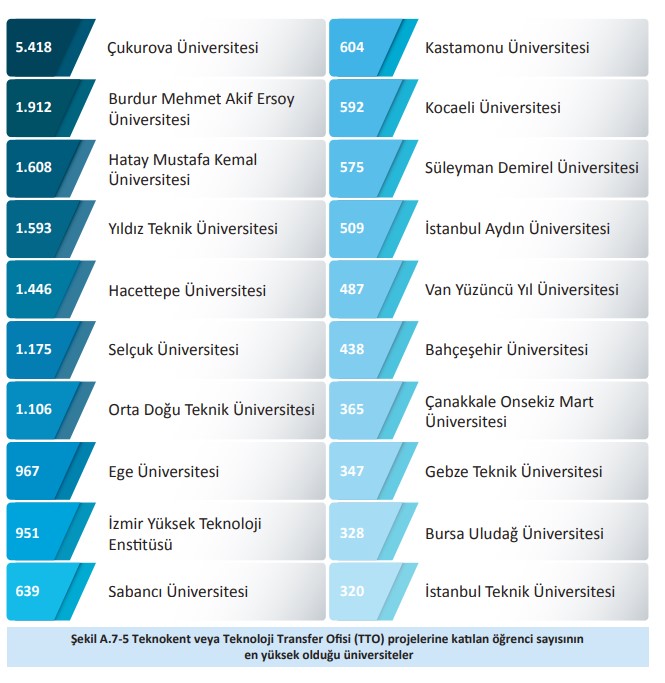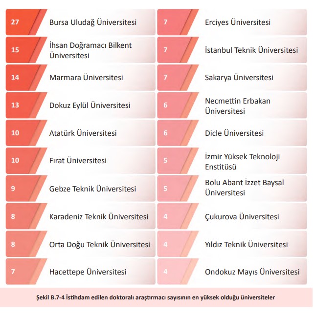 Özellikle araştırma-geliştirme kategorisinde uzun yıllardır en iyiler listesinde yer almayı sürdüren BUÜ, TÜBİTAK projeleri üretilmesi ve bütçe kullanımı noktasında birden fazla alanda diğer üniversitelerin önünde yer aldı. Türkiye’nin en yoğun öğrenci nüfusuna sahip yükseköğretim kurumlarından biri olan BUÜ, en fazla öğrenci topluluğu ve en fazla topluluğa üye öğrenci sayısı ile de yine listelerde kendisine yer buldu. Teknokent ve Teknoloji Transfer Ofisi projelerinde yer alan öğrenci sayısı ile en iyi ilk 20 üniversite arasında gösterilen BUÜ, kütüphanesindeki engelli dostu kaynak sayısının yanı sıra uluslararası ödül sayısının da en yüksek olduğu üniversitelerin arasında gösterildi. BUÜ, en iyi sıralama başarısını ise istihdam edilen doktoralı öğrenci kategorisinde gösterdi. Bursa’nın en büyük üniversitesi, toplam 27 doktora öğrencisi ile Türkiye’nin ilk sırasında yer almayı başardı.