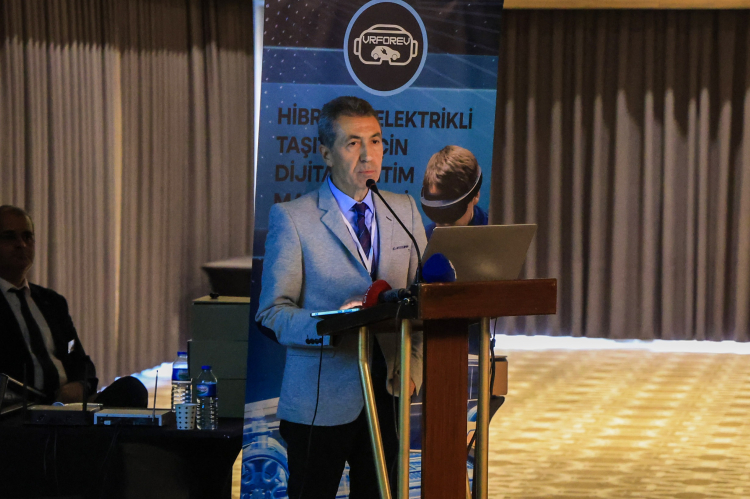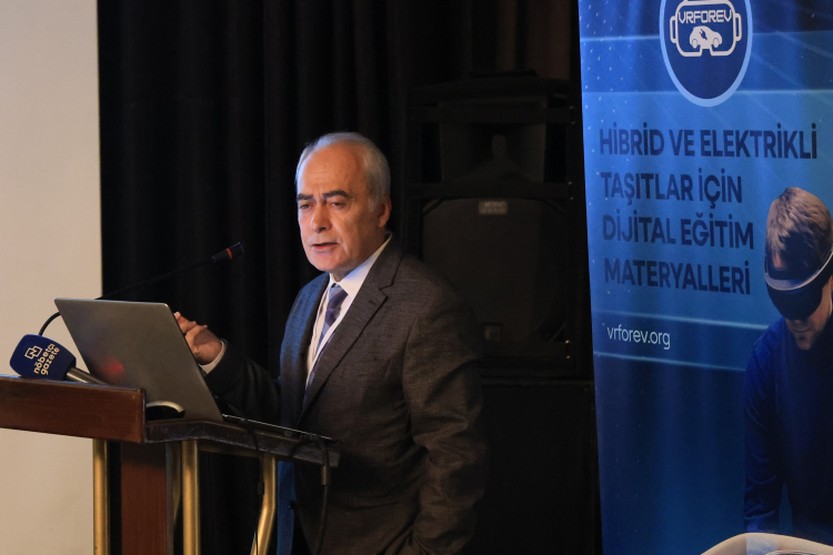 Prof. Dr. Abdil Kuş’un ardından konuşma yapan Proje Koordinatör Yardımcısı Prof. Dr. Rıdvan Arslan da, “Projenin bilimsel boyutuna odaklanarak, ihtiyaç analizinin 440 katılımcıyla 3 ülkede yapıldı ve beklentiler benzer çıktı. Analiz sonuçlarına göre önceliklendirme yapılarak 4 farklı modülden oluşan eğitim programı geliştirildi. Proje çıktısı olmamasına rağmen, çalışmayı desteklemek amacıyla 4 akademik ortağın katkısıyla "Hibrit Elektrikli Taşıtlar Teknolojisi" konulu İngilizce bir kitap hazırlandı. Bu kitap AR destekli görseller içeriyor. Yapılan karşılaştırmalı test ve değerlendirmelerde, VR/AR uygulamaları kullanılarak eğitim alan deney grubunun, klasik yöntemle eğitim alan kontrol grubuna göre %46,5 civarında daha başarılı oldu. Bunun da %40'lık bir verim artışı anlamına geliyor. Bu sonuç bilimsel literatür için çok önemli” şeklinde konuştu.