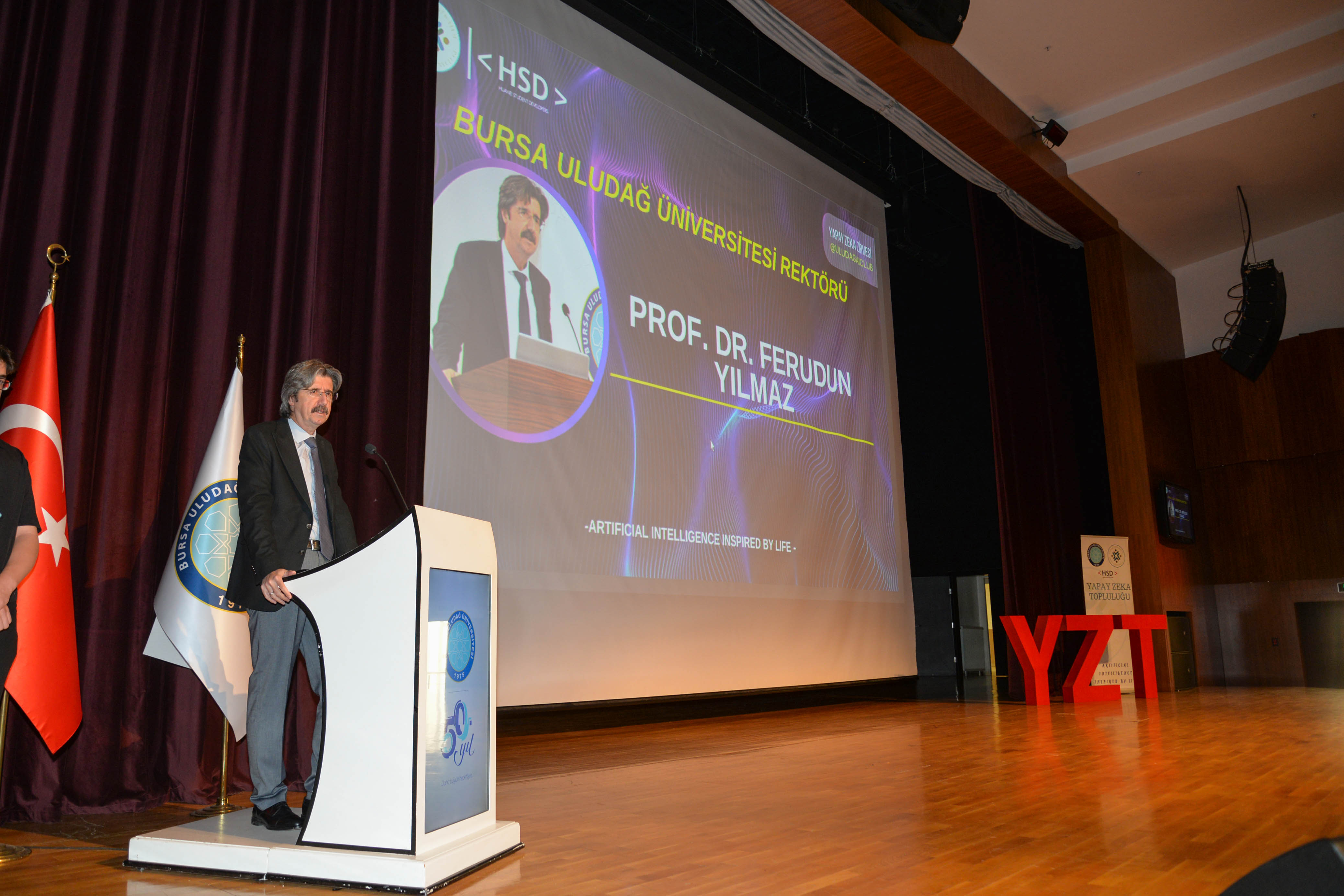Zirvenin açılış konuşmasını yapan BUÜ Rektörü Prof. Dr. Ferudun Yılmaz, üniversite eğitiminin yalnızca derslerden ibaret olmadığını vurgulayarak; “150’den fazla aktif öğrenci topluluğumuz bulunuyor. Bu topluluklarımız yürüttükleri faaliyetlerle burayı adeta 24 saat yaşayan bir kampüse çevirmeyi başardılar. Öğrenci topluluklarının faaliyetlerini son derece önemsiyoruz. Bu programı düzenleyen Yapay Zekâ Topluluğumuz da genç yaşına rağmen kalıcı topluluklardan biri haline gelmeyi başardı” dedi.