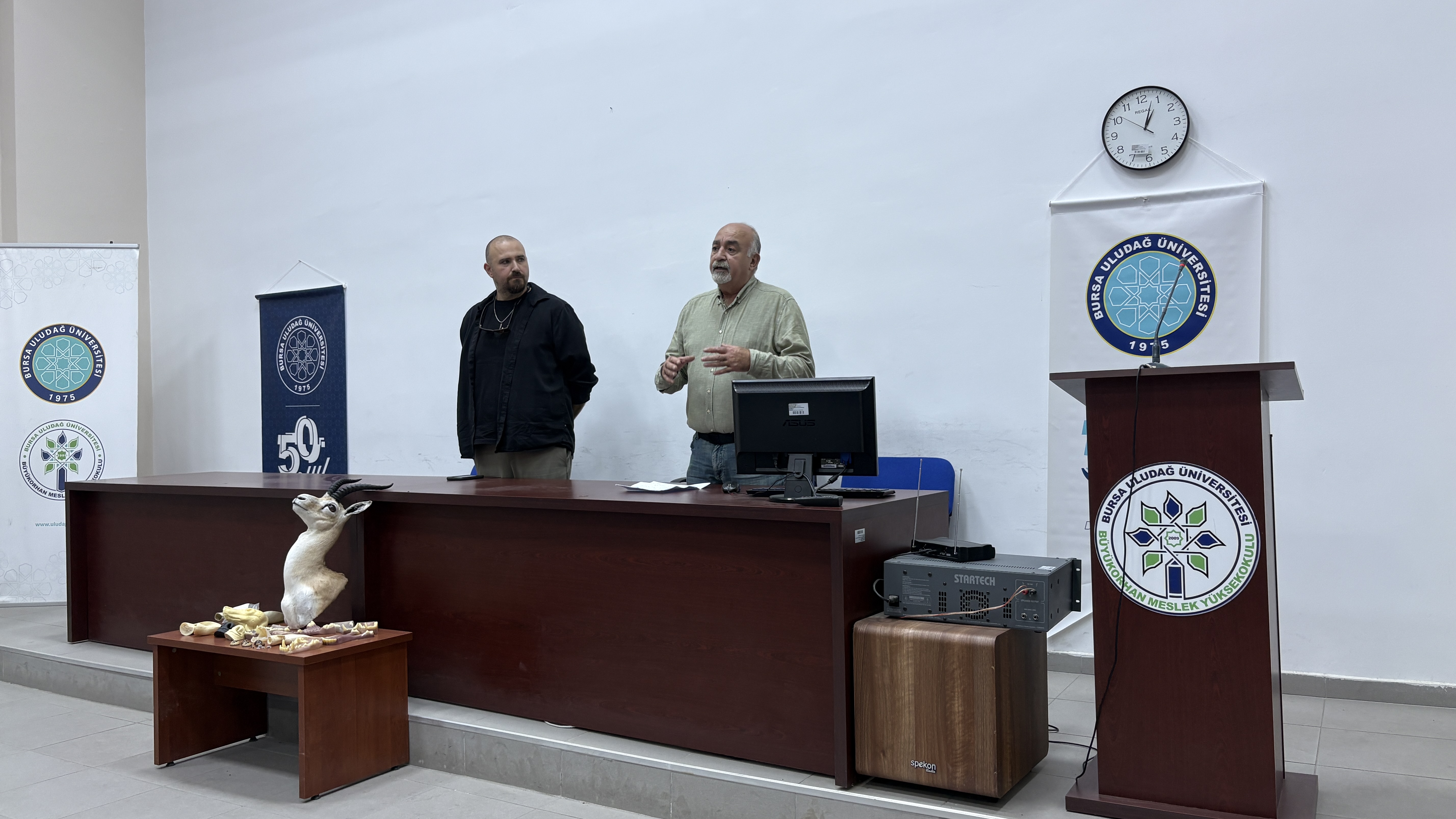 06 Kasım 2025 Perşembe günü saat 13:00’te Büyükorhan Meslek Yüksekokulu Konferans Salonu’nda gerçekleşen Bilim ve Sanatta Taksidermi, öğrencilerin yoğun katılımı ve ilgisiyle tamamlandı. Taksidermi alanında Türkiye ve dünyada önemli çalışmalara imza atan İhsan YEY ve Kaan YEY, yaban hayatı örneklerinin bilimsel koleksiyonlara kazandırılmasına dair bilgi ve tecrübelerini öğrencilerle paylaştı.