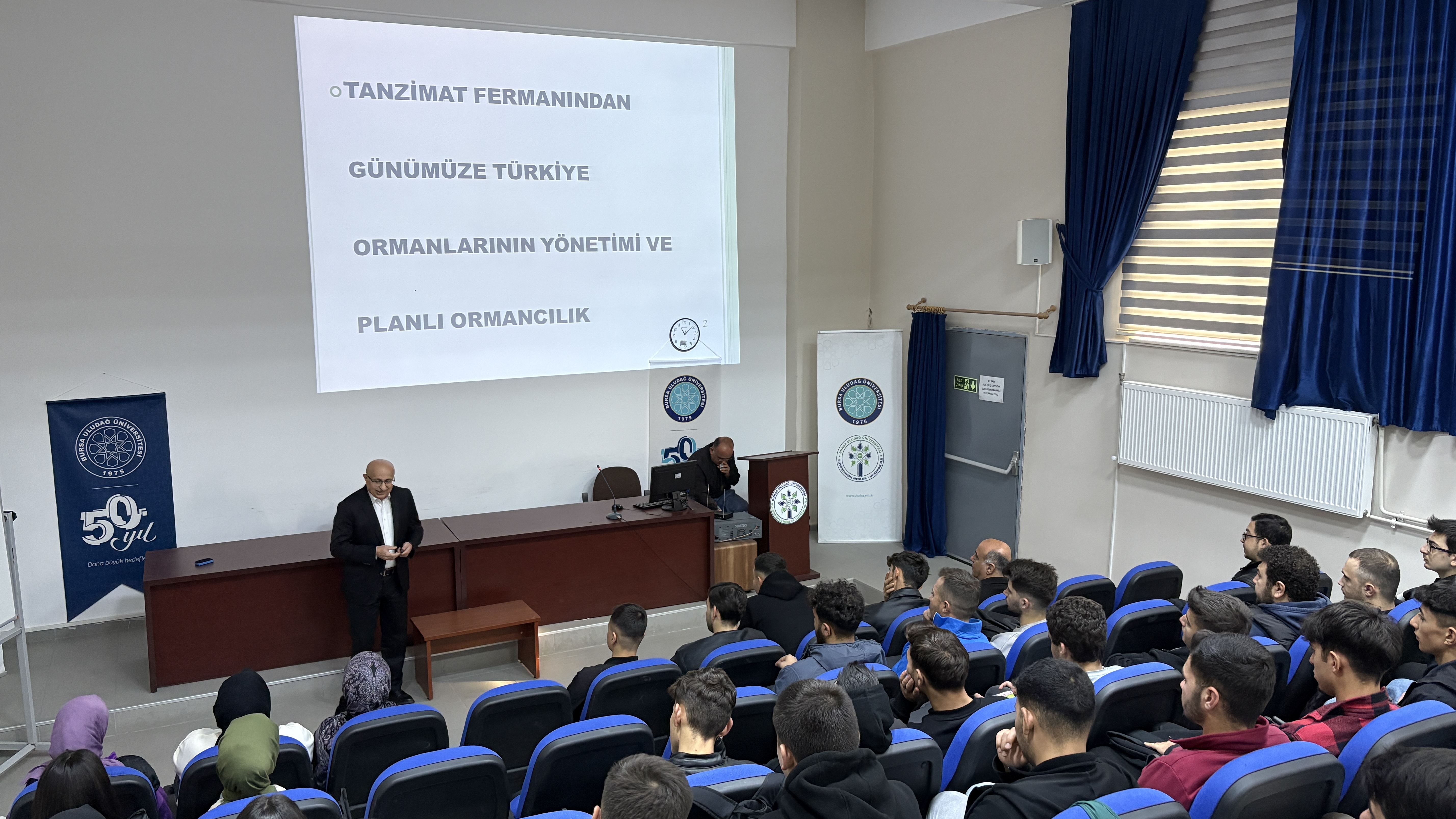 Şube Müdürü Şükrü AÇICI, sunumunda Türk ormancılık teşkilatının tarihsel gelişimini, yıllar içerisinde meydana gelen yapısal değişimleri, önemli kanun ve yönetmelik düzenlemelerini ve teşkilatın bugünkü yapıya nasıl ulaştığını sade ve anlaşılır bir dille anlattı. Ayrıca geçmişten günümüze ormanların nasıl planlanıp yönetildiğine, planlı ormancılık anlayışının hangi aşamalardan geçerek geliştiğine değindi.
