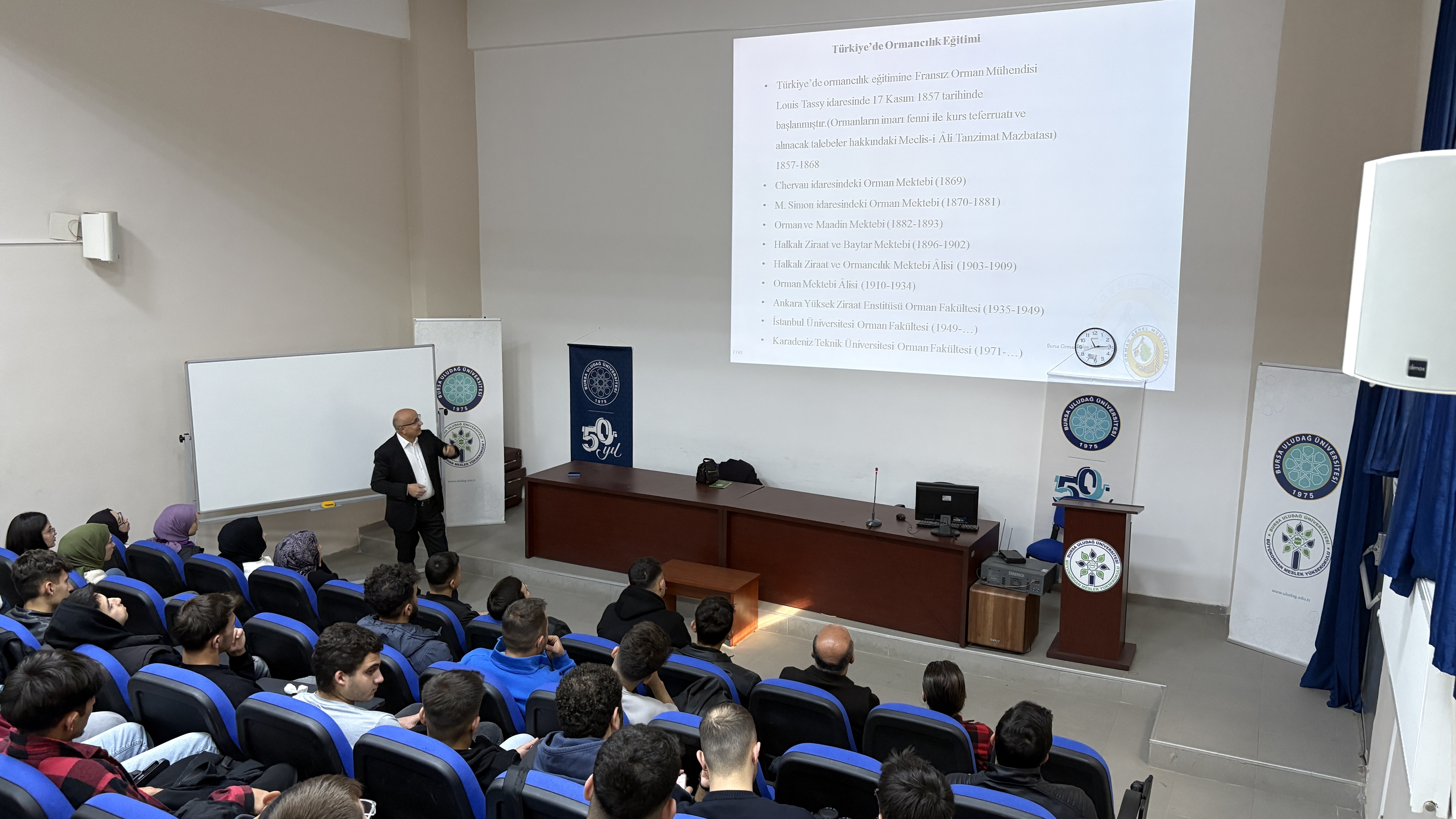 20.11.2025 saat 11.00’de Bursa Orman Bölge Müdürlüğünde Şube Müdürü Şükrü AÇICI tarafından Ormancılık Bölümü öğrencilerine yönelik "Tanzimat Fermanından Günümüze Türkiye Ormanlarının Yönetimi ve Planlı Ormancılık" konulu seminer gerçekleştirildi. Seminer, geleceğin Orman Muhafaza Memuru adayları olan öğrenciler tarafından ilgiyle takip edildi.