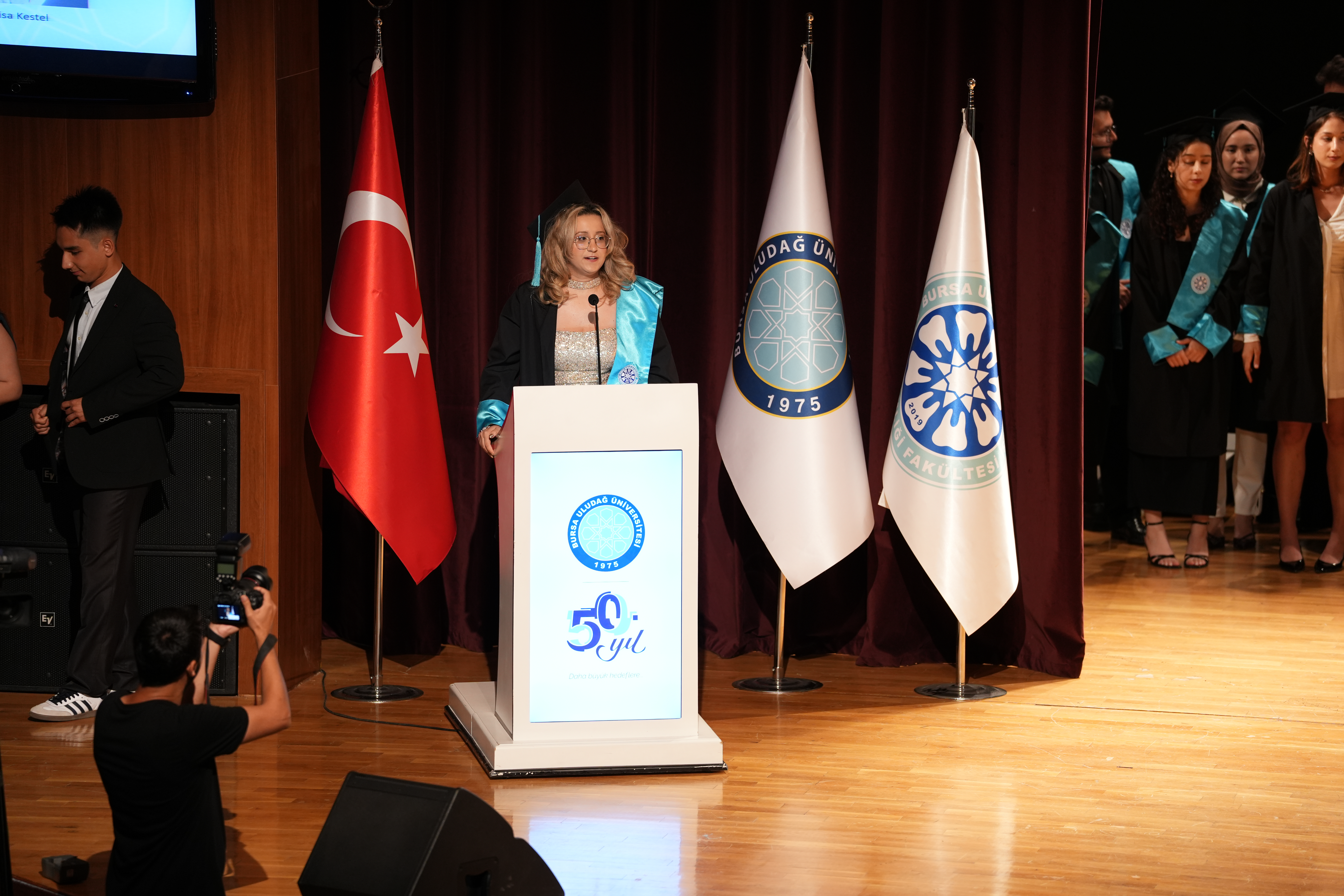 Rektör Prof. Dr. Ferudun YILMAZ ise Fakültenin kısa sürede önemli bir gelişim kaydettiğini, ilk mezunların Fakültenin geleceğini aydınlatan bir ışık olduğunu vurguladı. Öğrencilerin meslek hayatında ülkeye ve insanlığa değerli katkılar sağlayacağına inandığını belirten YILMAZ, aileleri de gösterdikleri fedakârlık için tebrik etti.
