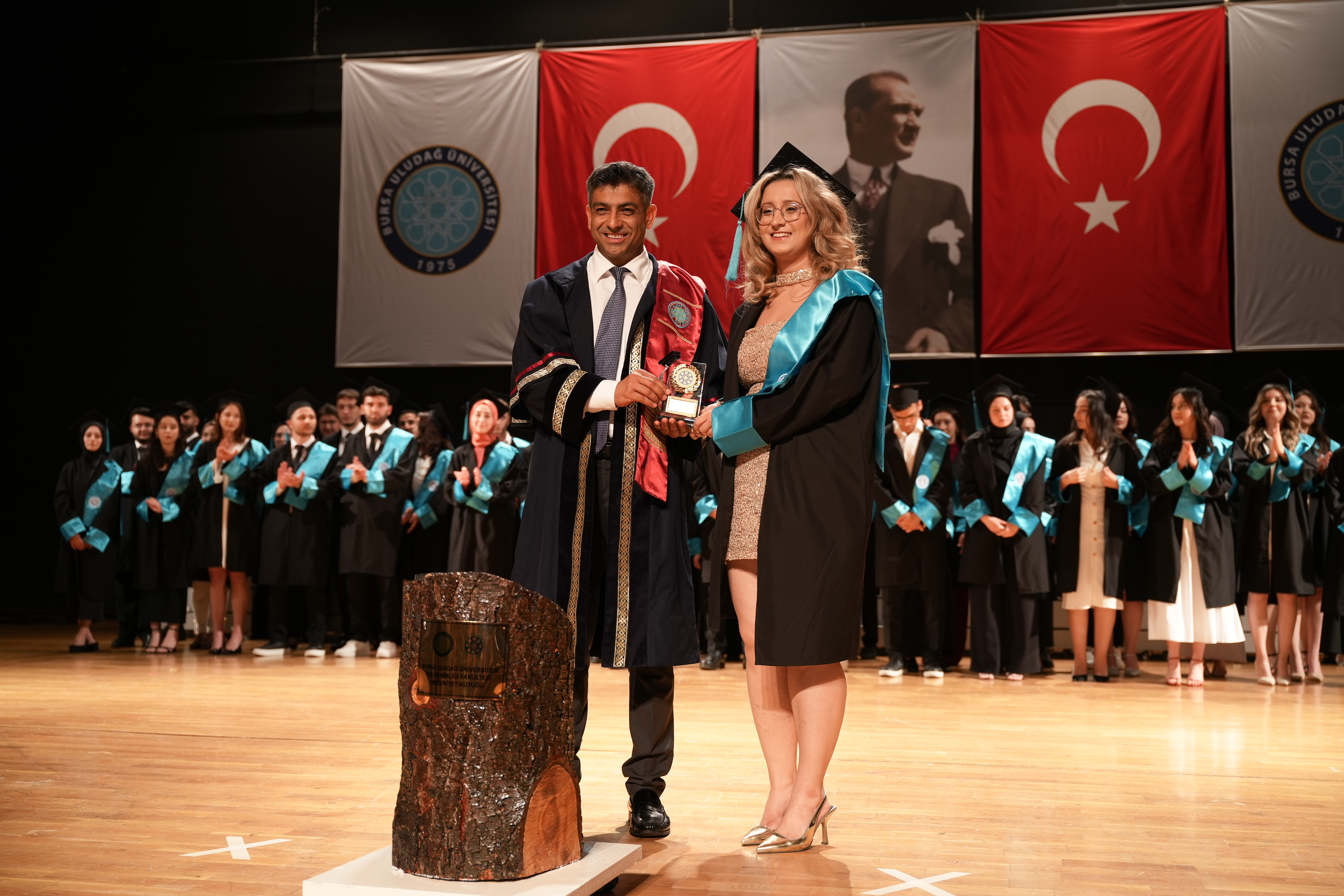 Program kapsamında Dönem IV öğrencisi Giray SAVAŞ’ın piyano dinletisi ve Fakülte müzik topluluğunun sahne aldığı program törene renk kattı. Fakülte birincisi Melisa KESTEL, ikincisi Beyza Nur MACİT ve üçüncüsü Fatma ELRİ ödüllerini aldı. Fakülte birincisi Melisa KESTEL mezuniyet kütüğüne adını taşıyan ilk plaketini çakarak Fakülte tarihine ilk imzayı bıraktı ve tüm mezunlar adına duygu ve düşüncelerini paylaştı.
