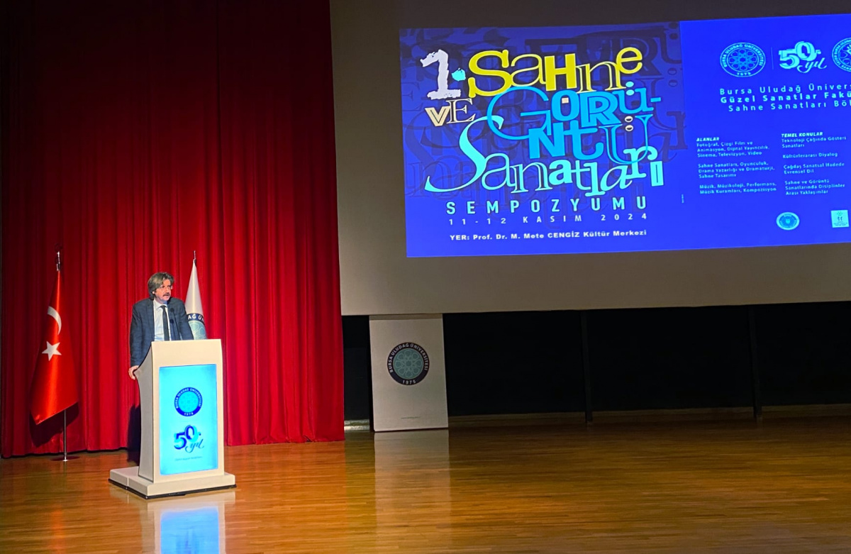 The "1st National Performing and Visual Arts Symposium" organized by the Performing Arts Department of the Faculty of Fine Arts of Bursa Uludağ University (BUÜ) in cooperation with the Bursa Metropolitan Municipality and the Bursa Culture, Arts and Tourism Foundation was held at the Prof. Dr. M. Mete Cengiz Culture Center on November 11-12, 2024. The opening ceremony was attended by BUÜ Rector Prof. Dr. Ferudun Yılmaz, Bursa State Theater General Manager Sezai Yılmaz, Bursa Metropolitan Municipality City Theater General Art Director Ali Düşenkalkar, Bursa Culture, Arts and Tourism Foundation General Secretary Fehim Ferik, academicians, artists, students and art lovers.