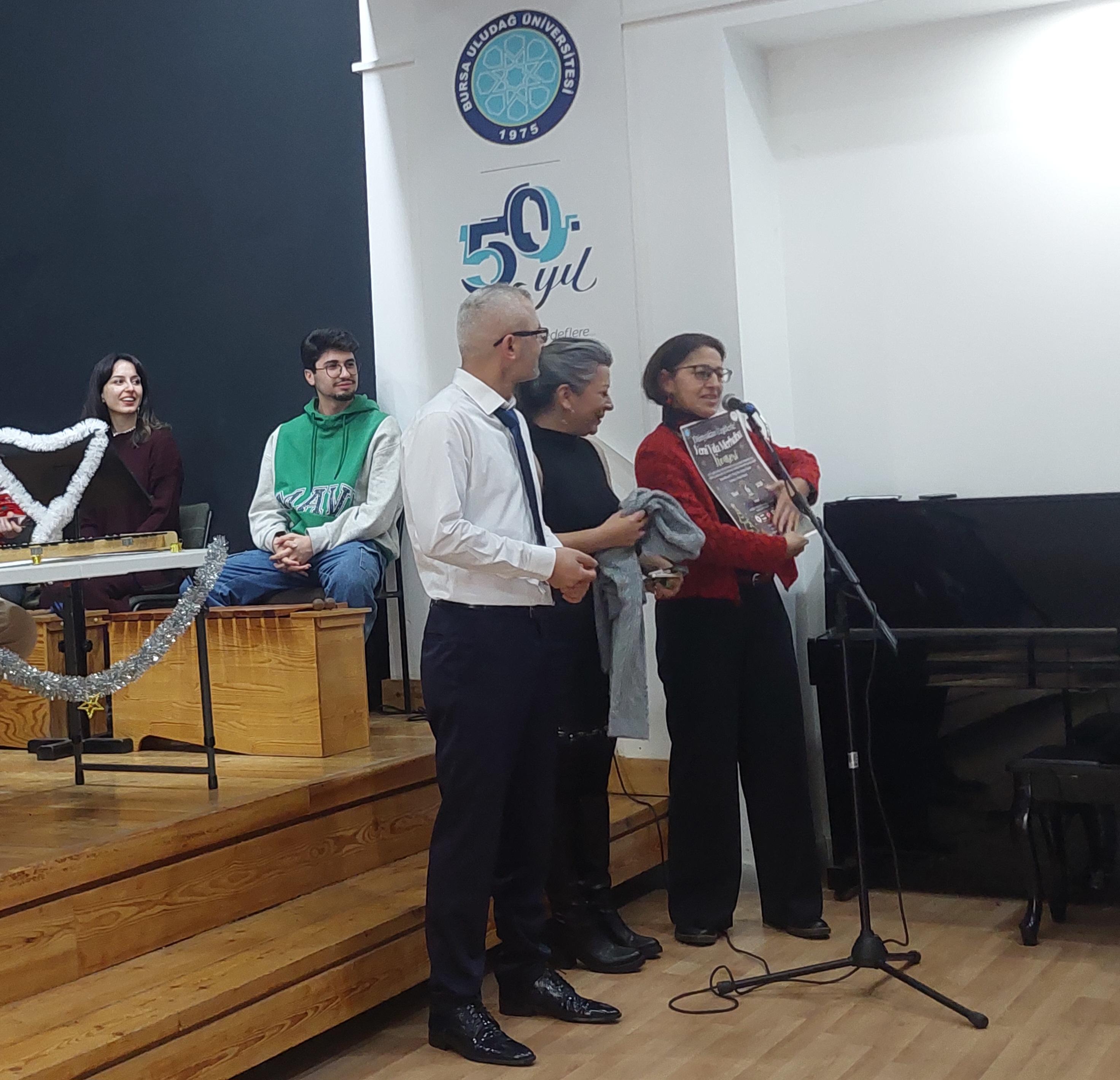 The program was further enriched by surprise contributions. Piano accompaniment by our support staff member Ferdi Oruç and a frame drum performance by our department secretary Özlem Şengöz added a sincere and warm atmosphere to the concert.
