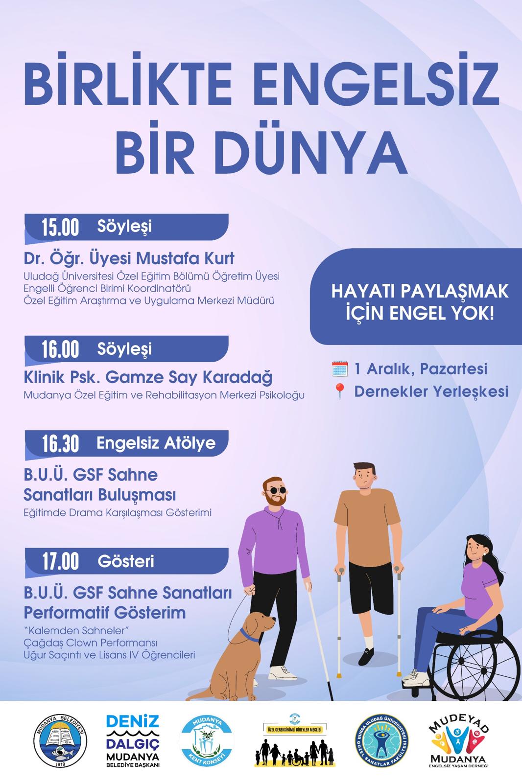 Bursa Uludağ Üniversitesi Özel Eğitim Araştırma ve Uygulama Merkezi (ÖZAUM) ile Engelli Öğrenci Birimi Koordinatörlüğü tarafından, 3 Aralık Dünya Engelliler Günü kapsamında kapsamlı bir farkındalık etkinliği gerçekleştirildi. Mudanya Belediyesi, Mudanya Kent Konseyi ve Mudanya Engelsiz Yaşam Derneği iş birliğiyle düzenlenen etkinlik, “Hayatı Paylaşmak İçin Engel Yok” temasıyla toplumda erişilebilirlik ve kapsayıcılık bilincini güçlendirmeyi hedefledi.