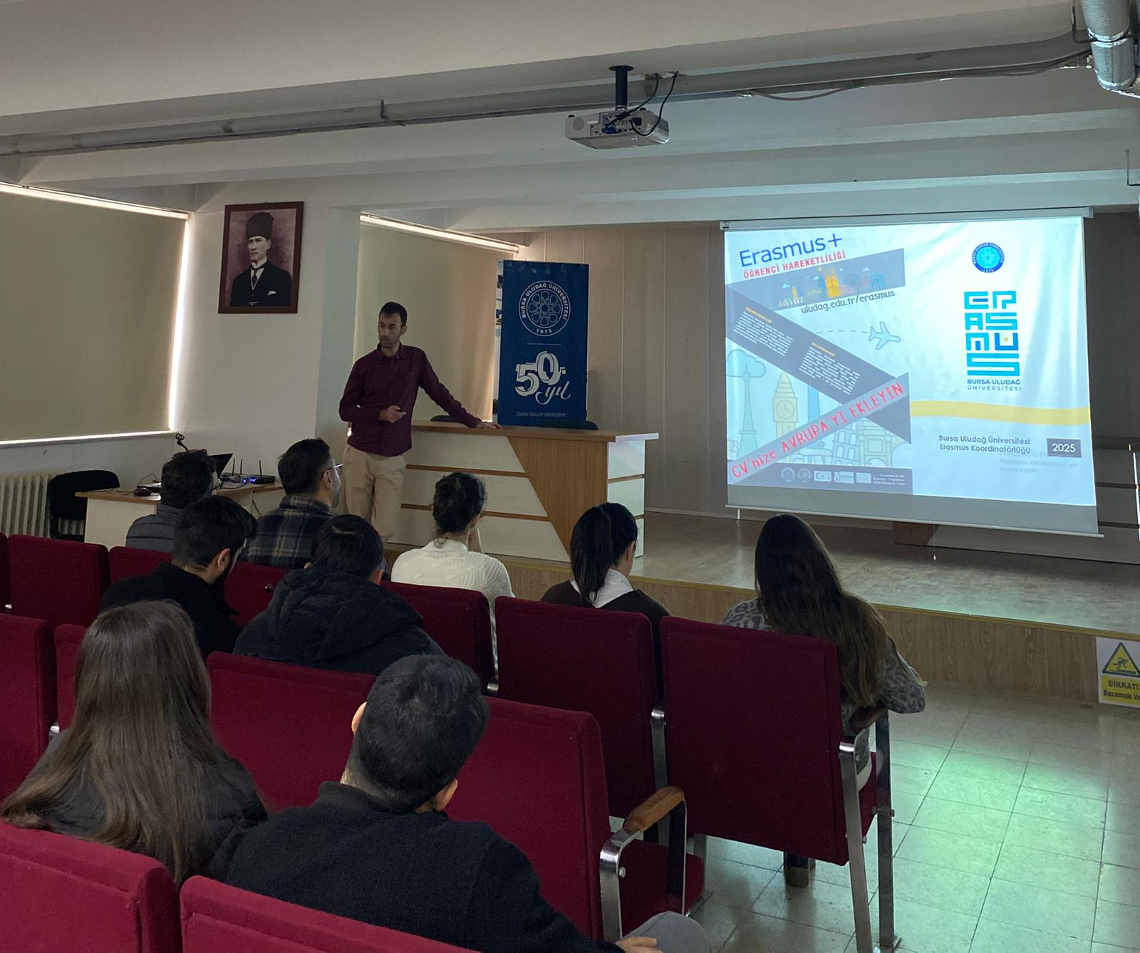Bursa Uludağ Üniversitesi (BUÜ) Erasmus Koordinatörlüğü, öğrencilerin uluslararası hareketlilik programları hakkında bilinçlenmesini ve Erasmus+ fırsatlarından daha etkin yararlanmasını sağlamak amacıyla üniversiteye bağlı Sağlık Hizmetleri Meslek Yüksekokulu, Teknik Bilimler Meslek Yüksekokulu, Sosyal Bilimler Meslek Yüksekokulu, MustafaKemalpaşa Meslek Yüksekokulu, Karacabey Meslek Yüksekokulu, İnegöl Meslek Yüksekokulu, İznik Meslek Yüksekokulu, Yenişehir İbrahim Orhan Meslek Yüksekokulu, Orhangazi Yeniköy Asilçelik Meslek Yüksekokulu, Mennan Pasinli Atçılık Meslek Yüksekokulu, Gemlik Asım Kocabıyık Meslek Yüksekokulu, Orhaneli Meslek Yüksekokulu, Keles Meslek Yüksekokulu, Harmancık Meslek Yüksekokulu, Büyükorhan Meslek Yüksekokulu'nda bilgilendirme toplantıları gerçekleştirdi.
