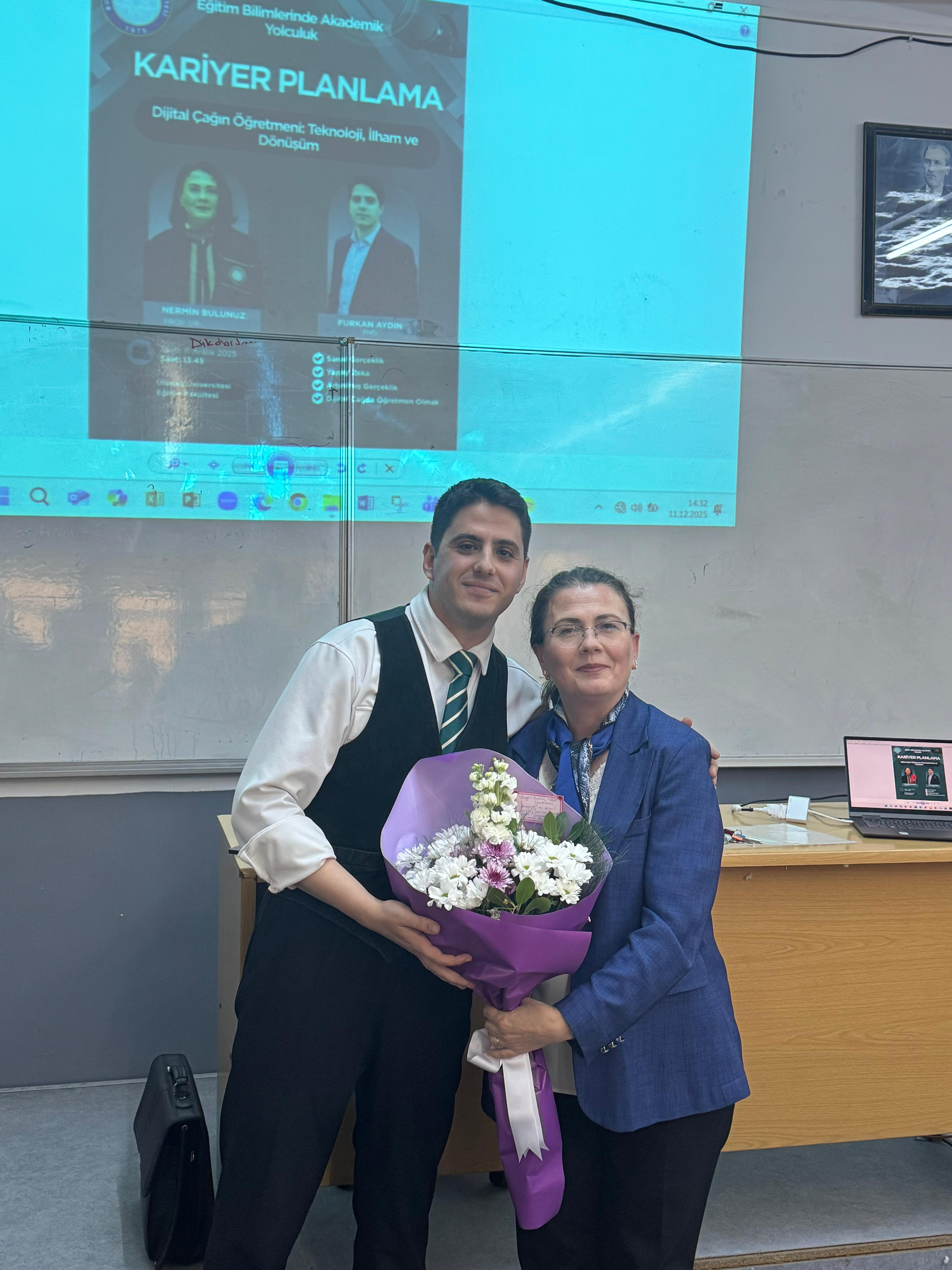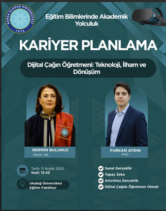 Furkan Aydın’ın 11.12.2025 tarihinde BUÜ Eğitim Fakültesi A blok 124 nolu sınıfta 13:50-14:35 saatleri arasında vermiş olduğu seminere Kariyer planlama dersini alan Matematik ve Fen Bilgisi Öğretmenliği 1. sınıf öğrencileri ve dersin öğretim elemanı Prof. Dr. Nermin BULUNUZ katıldılar.