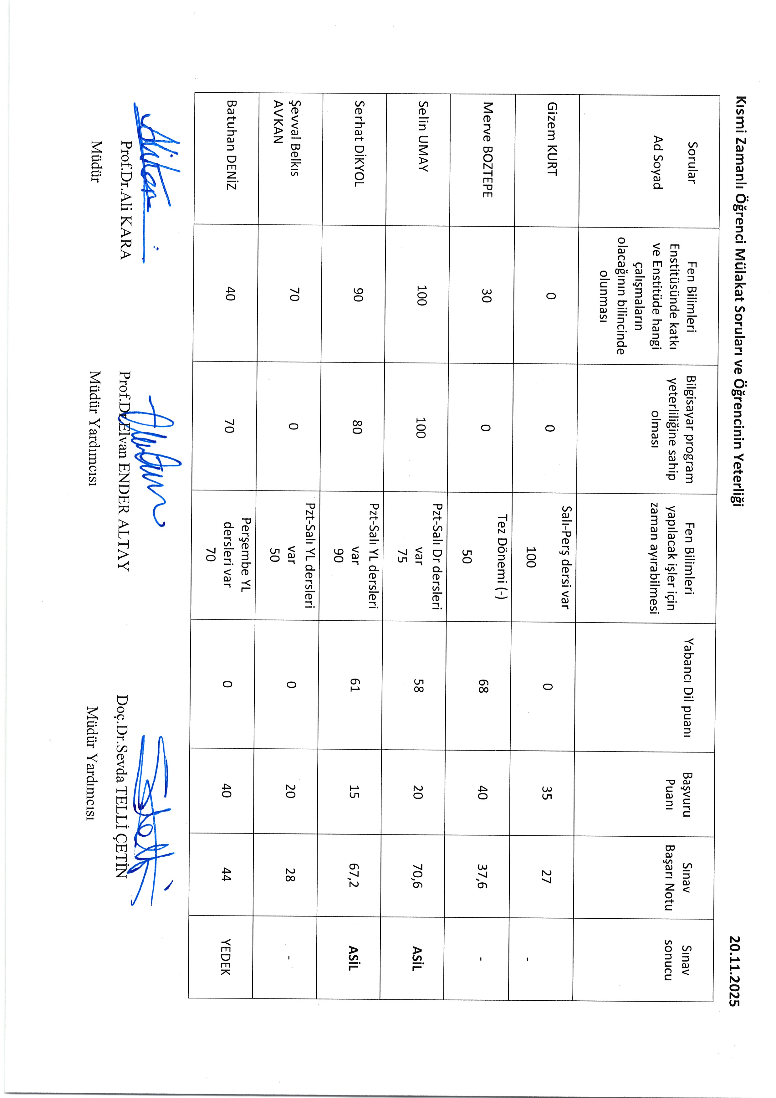 KISMI ZAMANLI BASVURU YAPAN ÖGRENCILERIN MÜLAKAT SONUCU