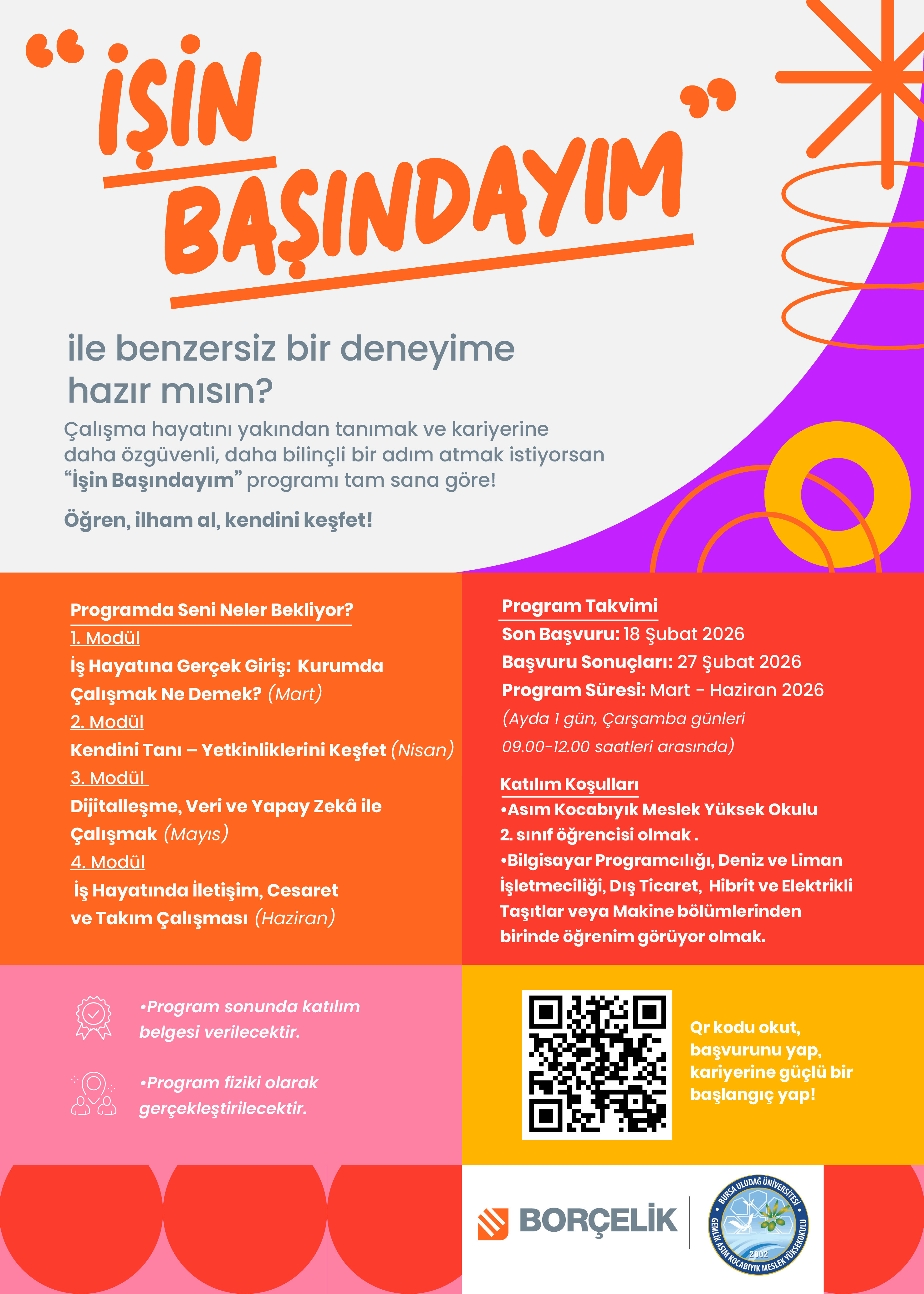Çalışma hayatını yakından tanımak ve kariyerine daha özgüvenli, daha bilinçli bir adım atmak istiyorsan Borçelik tarafından hayata geçirilen “İşin Başındayım” programı tam sana göre!