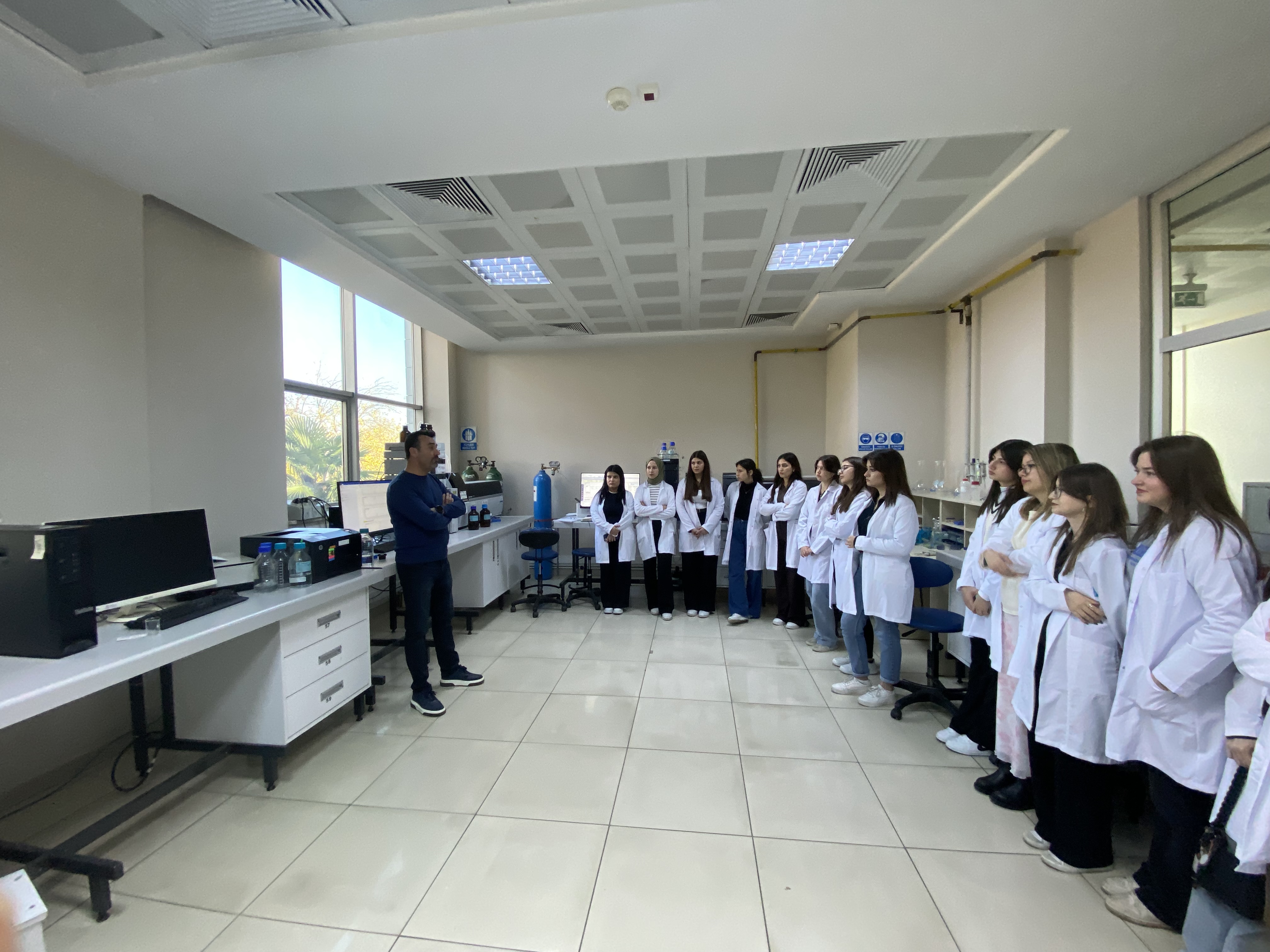 Ziyaret sırasında öğrenciler, laboratuvarın organizasyon yapısı, yönetim ve işleyişi hakkında bilgilendirildi. Ardından, laboratuvarda kullanılan cihazlar tanıtıldı ve çeşitli analizler uygulamalı olarak gösterildi. Bu deneyim, öğrencilerin teorik bilgilerini donanımlı bir laboratuvar ortamında pratik uygulamalara dönüştürmelerine olanak sağladı. Böylece, hem mesleki bilgi ve becerilerini geliştirme fırsatı buldular hem de sektöre hazırlık aşamalarında önemli bir adım atmış oldular.