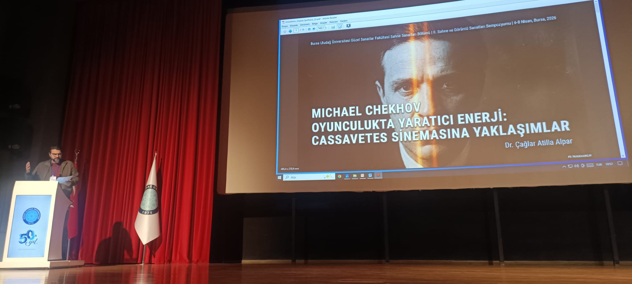 Bursa Büyükşehir Belediyesi, Osmangazi Belediyesi ve Bursa Kültür Sanat ve Turizm Vakfı’nın (BKSTV) katkılarıyla 6-7 Nisan 2026 tarihlerinde Prof. Dr. M. Mete Cengiz Kültür Merkezi’nde gerçekleştirilen sempozyuma; BUÜ Rektörü Prof. Dr. Ferudun Yılmaz, BUÜ Güzel Sanatlar Fakültesi Dekanı Prof. Ali Sait Liman, Bursa Şehir Tiyatrosu Genel Sanat Yönetmeni Ali Düşenkalkar ve Nilüfer Kent Tiyatrosu Müdürü Kazım Güçlü’nün yanı sıra akademisyen ve öğrenciler katıldı.