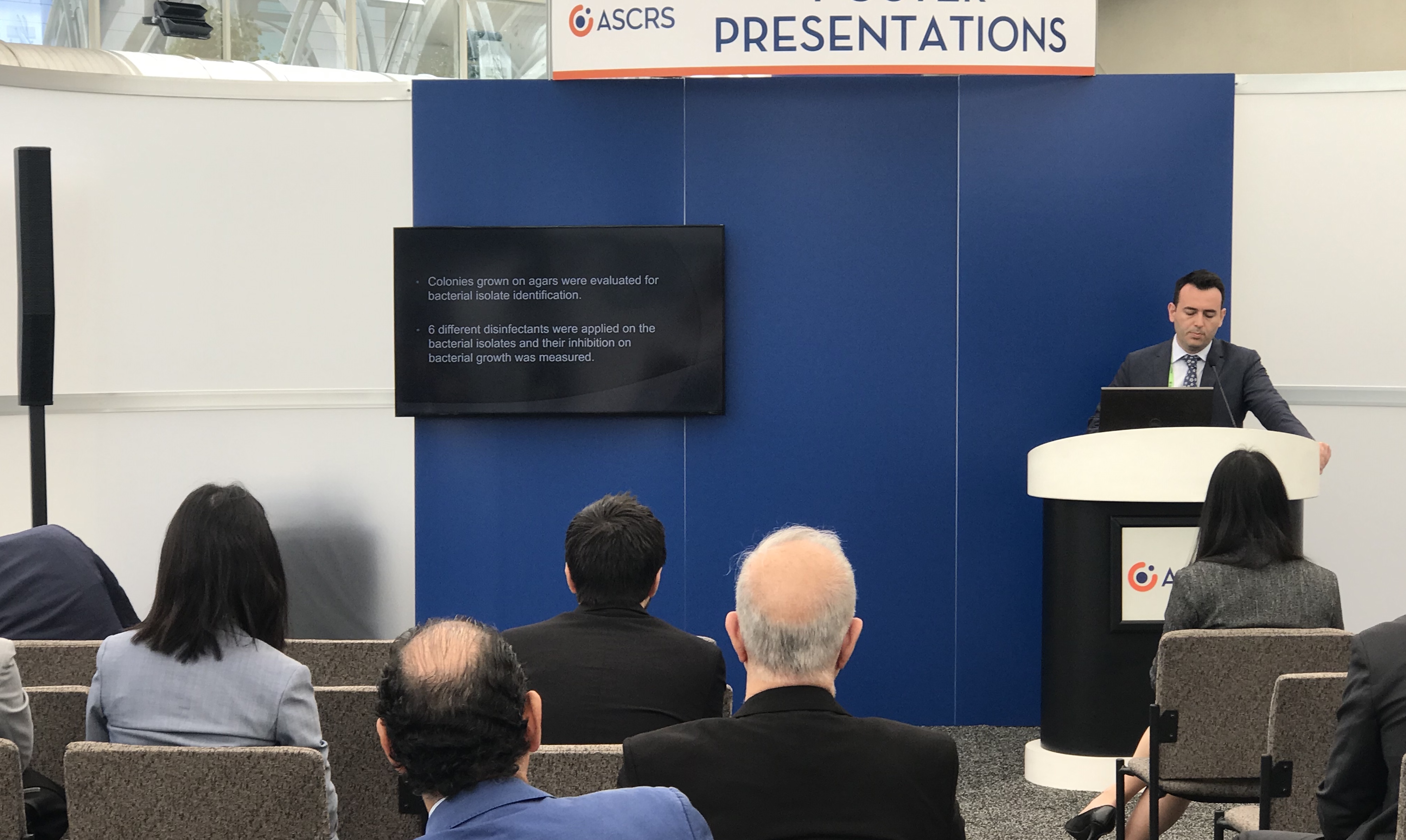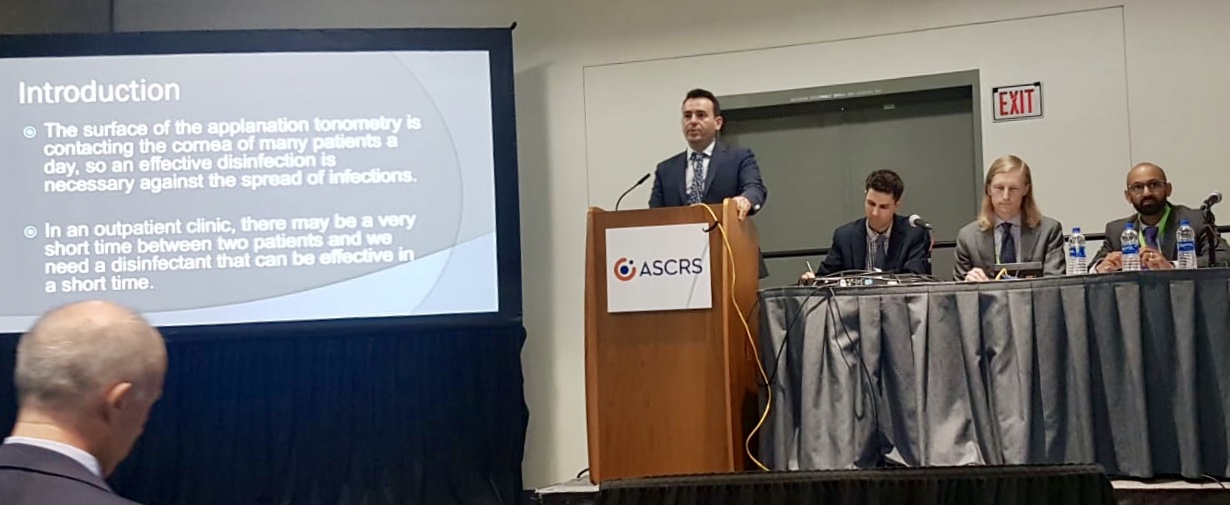 Doç. Dr. Sertaç Argun Kivanç’in sundugu; Bursa Uludag Üniversitesi’nden Doç. Dr. Berna Akova’nin, Eskisehir Teknik Üniversitesi’nden Prof. Dr. Merih Kivanç’in ve Baskent Üniversitesi Konya Hastanesi’nden Dr. Ögretim Üyesi Mahmut Oguz Ulusoy’un bilimsel katkilari ile ortaya çikan “Göz tansiyonu ölçüm cihazlarinin mikrobiyolojik olarak incelenmesi ve yeni dezenfeksiyon metotlarinin gelistirilmesi” konulu çalisma, 500 çalisma içerisinden en basarililar arasina girdi. Çalisma, tekrar sözlü olarak sunulmak üzere seçildi. Ikinci kez sözlü olarak sunulan çalisma, Amerika’daki toplantida 2.lik ödülü ile ödüllendirildi.