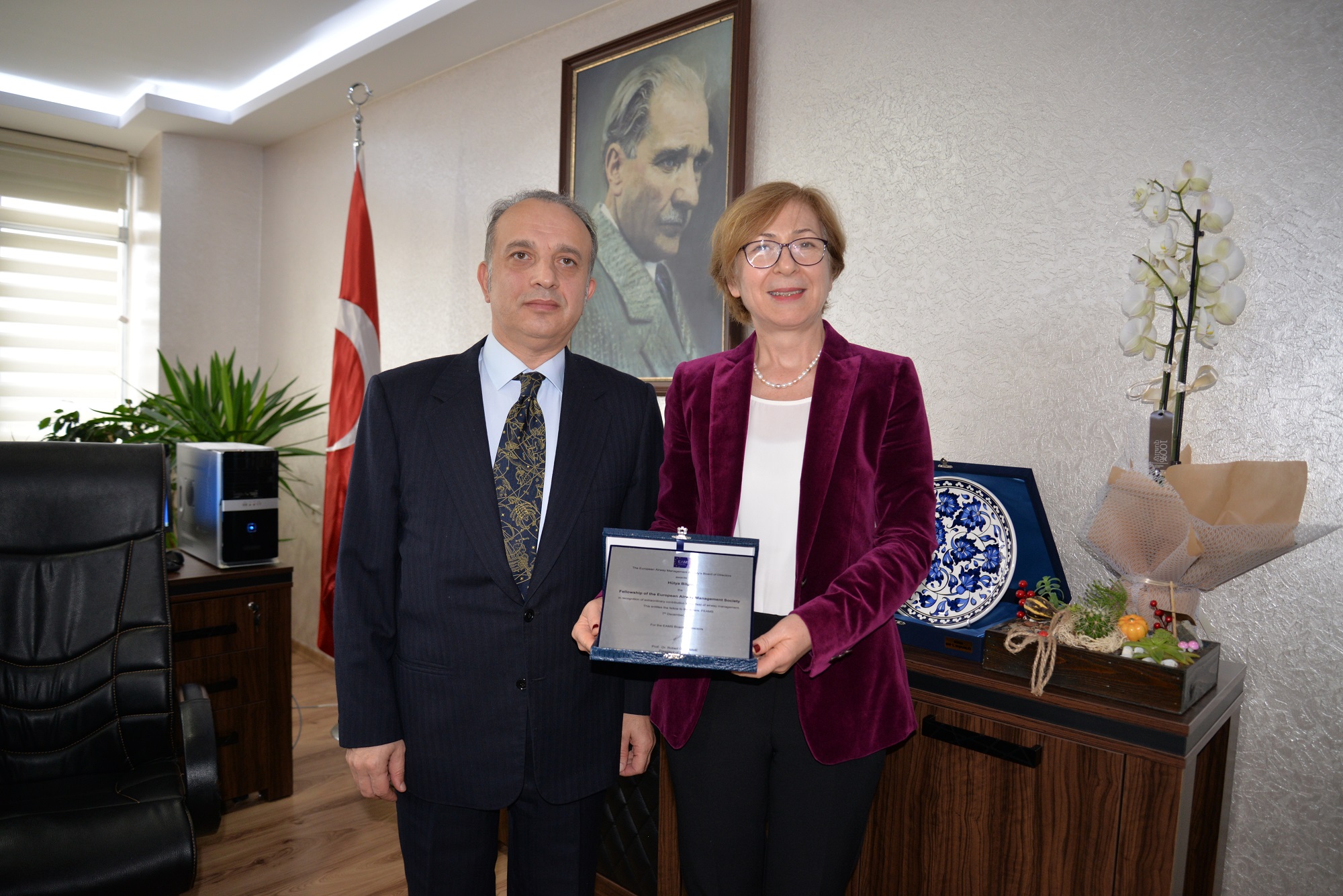 BUÜ Tip Fakültesi Ögretim Üyesi Prof. Dr. Hülya Bilgin, akademik yasami boyunca havayolu yönetimi (airway management) konusunda uluslararasi ve ulusal ölçekli yaptigi çalismalar, uygulamalar, egitim faaliyetleri ve hasta bakimina gösterdigi özenin yani sira, yaptigi liderlik ile konuya dikkat çekilmesini sagladigi için Avrupa Havayolu Yönetimi Dernegi (European Airway management Society-EAMS) tarafindan uluslararasi taninirligi olan EAMS Fellow (FEAMS) diplomasini almaya hak kazandi. Prof. Dr. Bilgin’e ayrica plaket takdimi de gerçeklestirildi.
