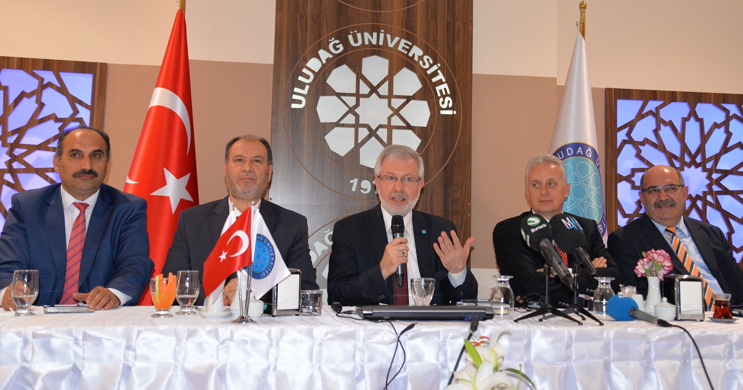 Uludag Üniversitesi Rektörü Prof. Dr. Yusuf Ulcay, üst düzey yöneticileriyle birlikte Mete Cengiz Kültür Merkezi’nde bir basin toplantisi yapti.