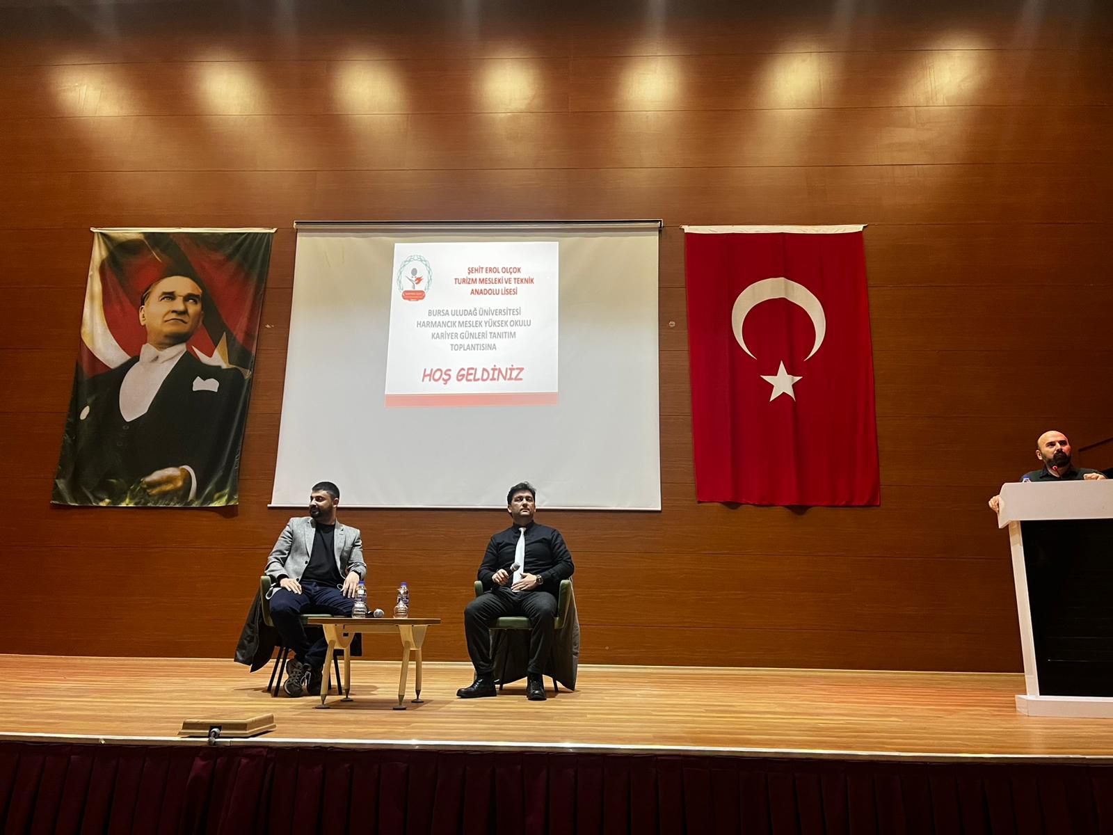 Bursa Uludağ Üniversitesi Harmancık Meslek Yüksekokulu, lise–üniversite iş birliği ve mesleki yönlendirme faaliyetleri kapsamında Bursa Şehit Erol Olçok Kız Mesleki ve Teknik Anadolu Lisesi’nde öğrenim gören Yiyecek ve İçecek Hizmetleri alanı öğrencilerine yönelik bir tanıtım programı gerçekleştirdi.