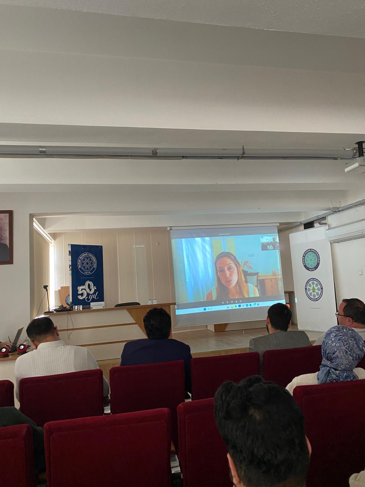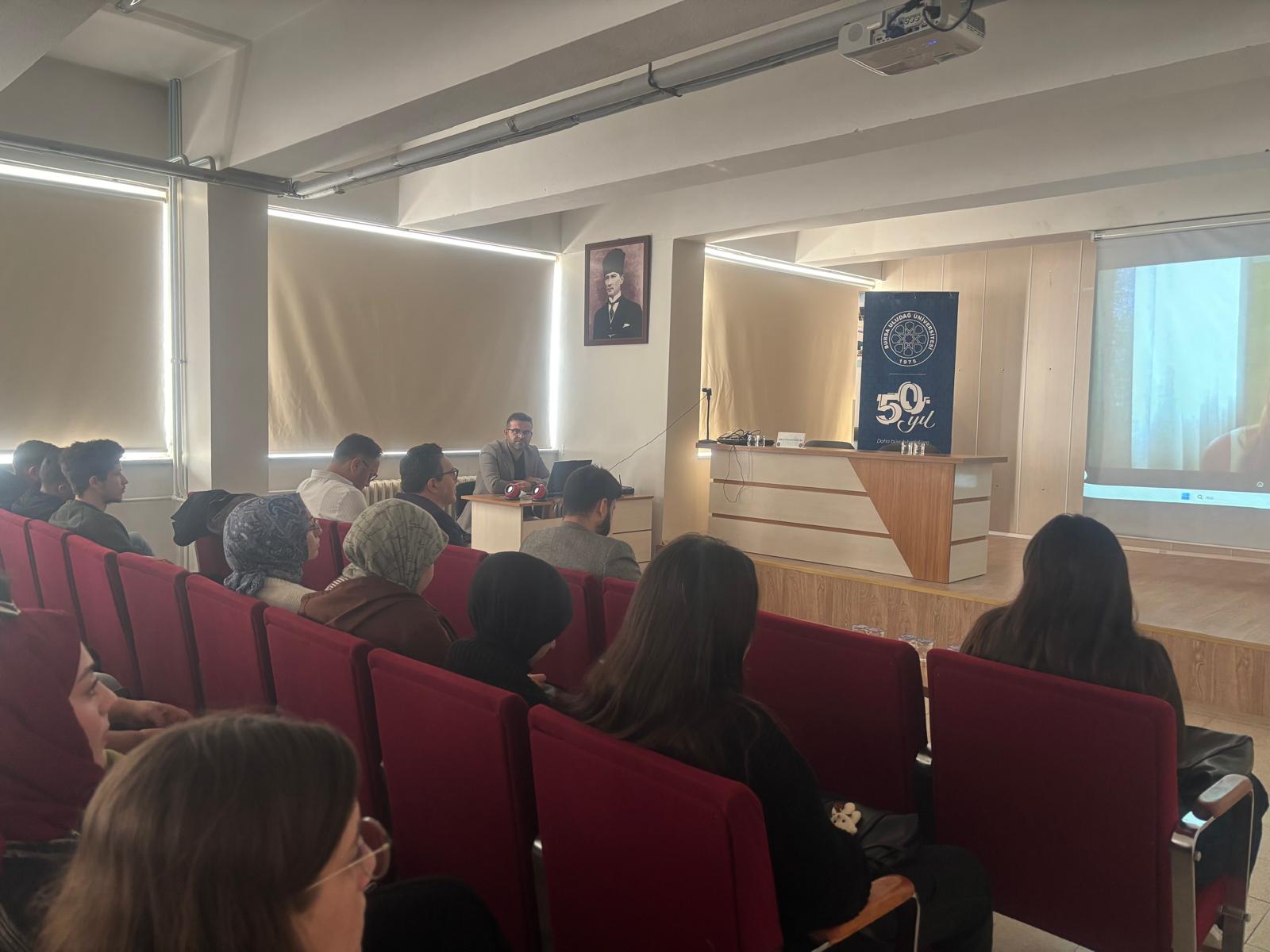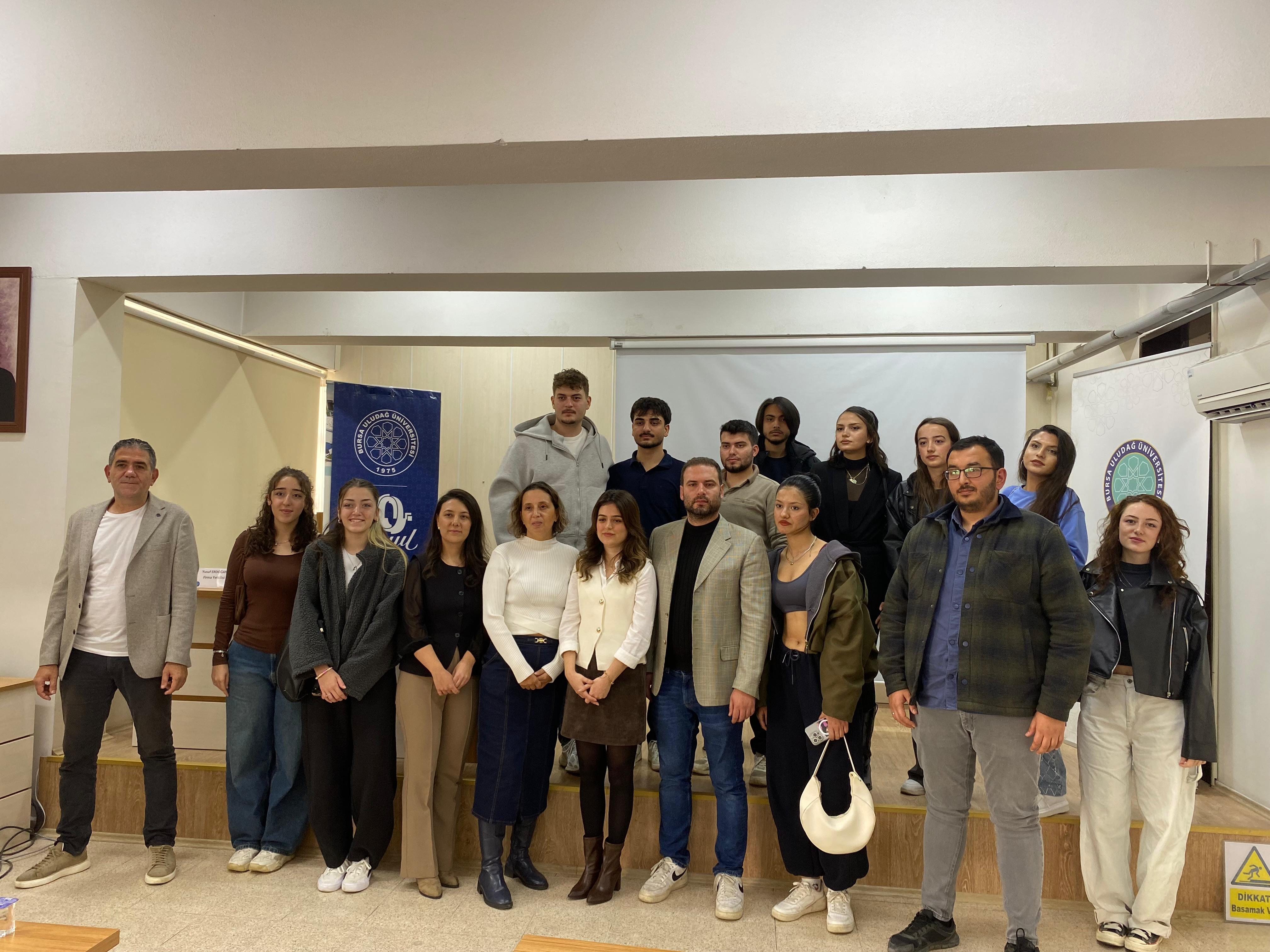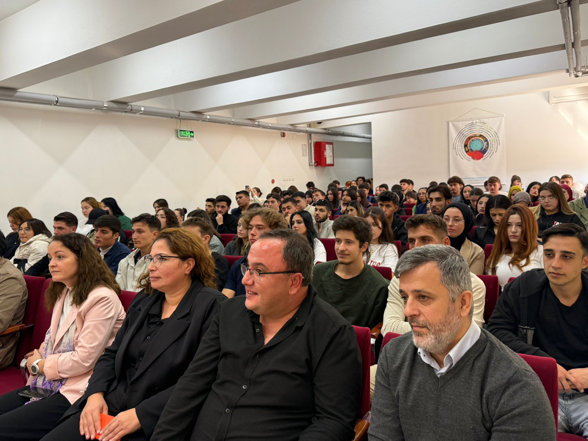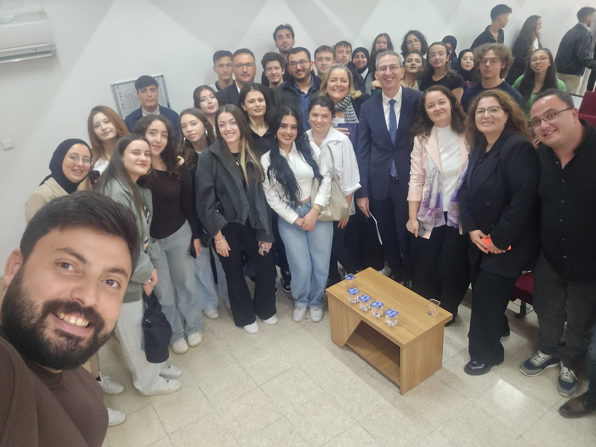 Turizm ve Seyahat Hizmetleri ile Turizm Otel İşletmeciliği Programları için düzenlenen ortak oturuma, Şeyda Gümüş (Bursa Büyükşehir Belediyesi Dış İlişkiler Daire Başkanlığı STİ Birimi Görevlisi) ve Ercüment Yılmaz (Bursa Büyükşehir Belediyesi Turizm Şube Müdürü) konuk oldu. Konuklar, Bursa’nın turizm potansiyeli, kültürel mirasın tanıtımı, turizm sektöründe yeni trendler ve belediye projeleri üzerine bilgilendirici bir sunum gerçekleştirdiler.