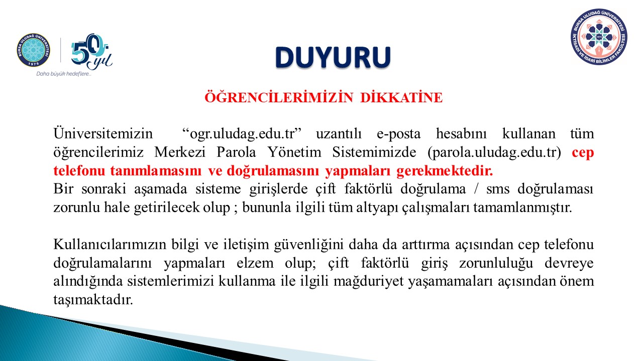 Öğrenci E-Posta Hesapları Kullanımı Hakkında Önemli Duyuru