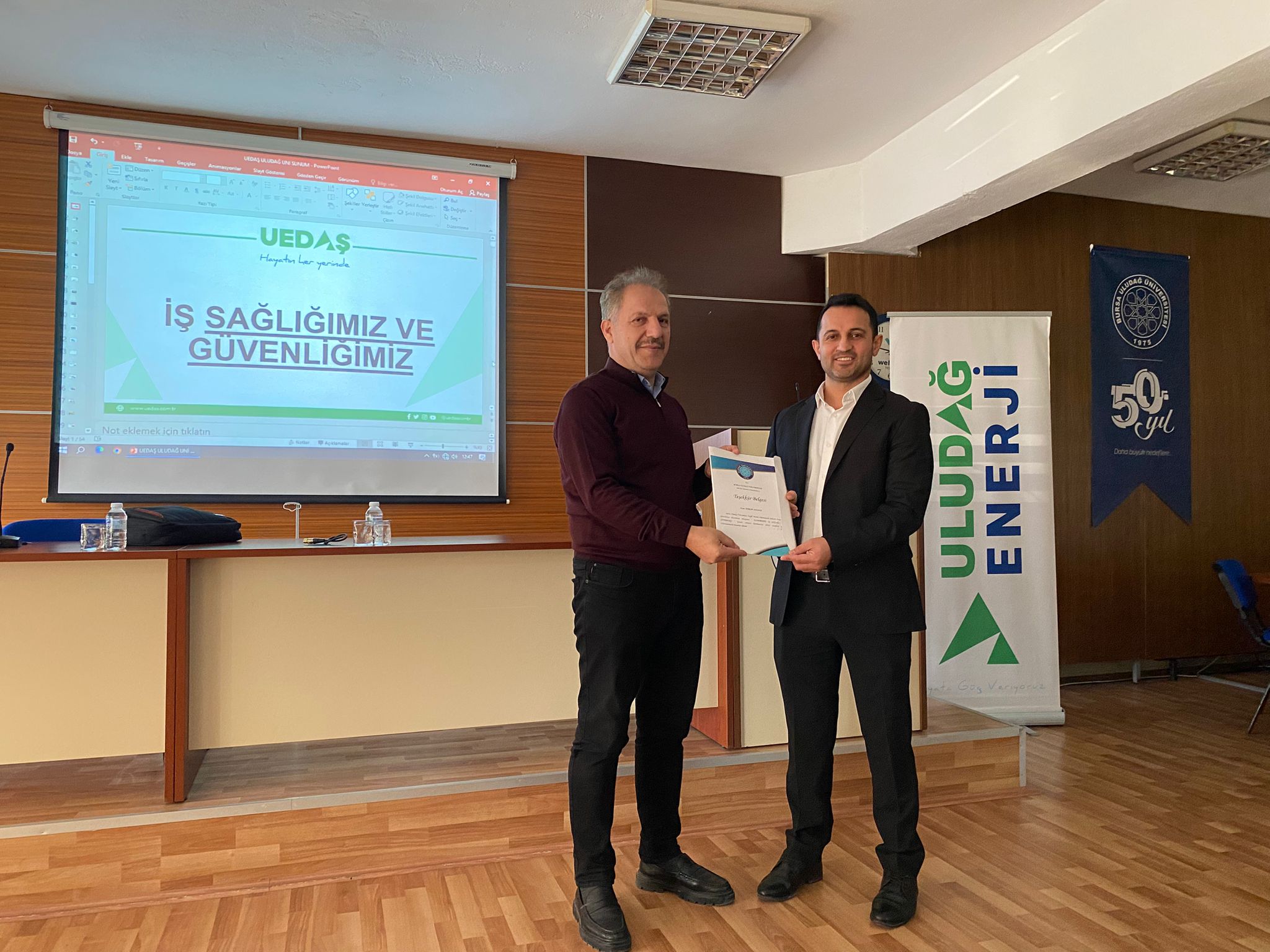 Seminer sonunda, katkılarından dolayı UEDAŞ İnegöl İşletme Müdürü Serkan Akkaya’ya teşekkür belgesi, İnegöl Meslek Yüksekokulu Müdürü Prof. Dr. Hikmet Sami Yıldırımhan tarafından takdim edildi. Ayrıca, etkinliğe sağladığı desteklerden dolayı UEDAŞ İnsan Kaynakları İş Ortağı Alper Temur’a teşekkür belgesi, Elektrik Enerjisi Üretim, İletim ve Dağıtımı Program Başkanı Öğr. Gör. Dr. Ömer Eriş tarafından sunuldu.