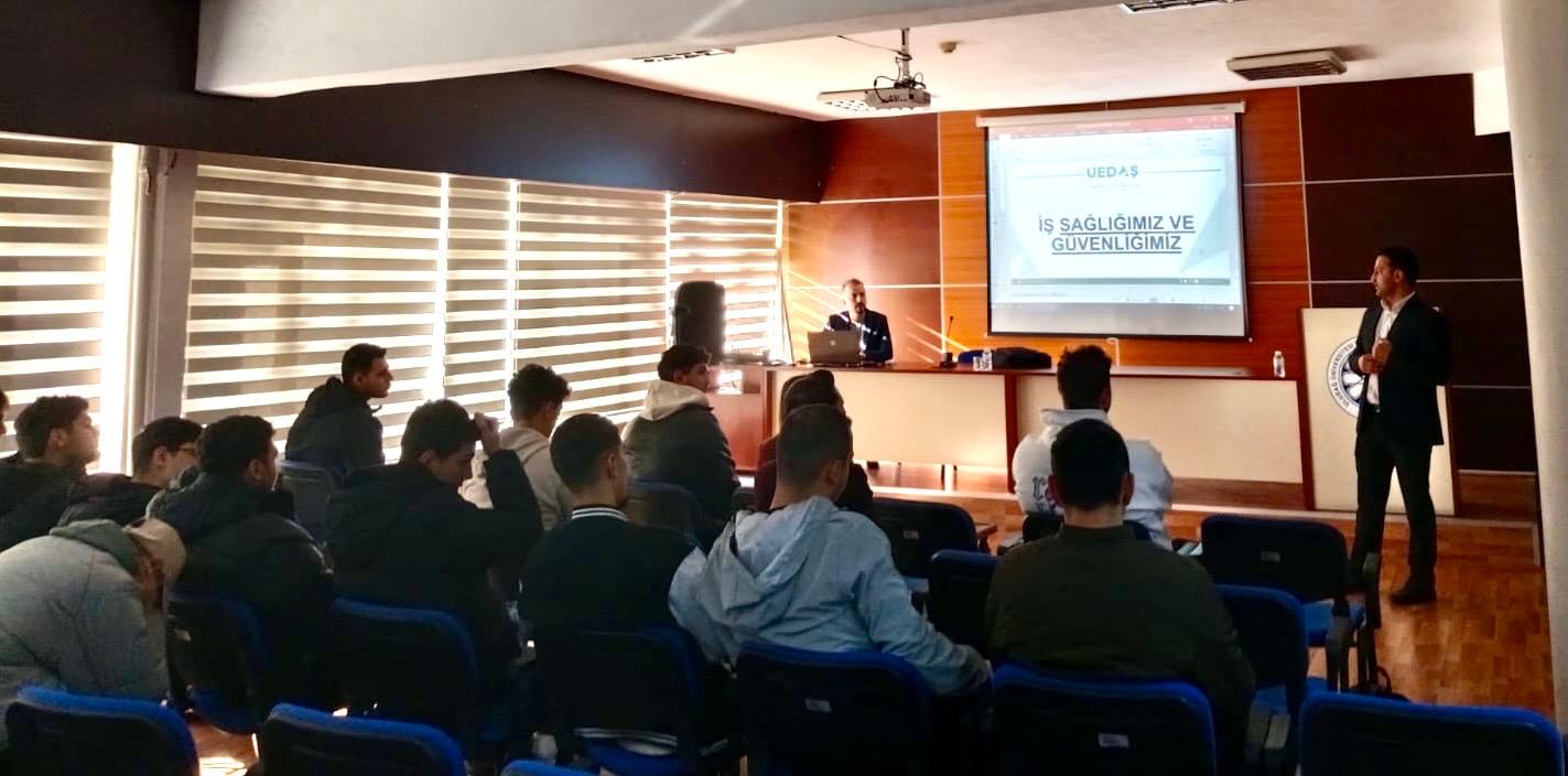 İnegöl Meslek Yüksekokulu Elektrik Enerjisi Üretim, İletim ve Dağıtımı Programı tarafından, programa devam eden öğrenciler ve Elektrik Programı mezunlarına yönelik olarak “Elektrikte İş Sağlığı ve Güvenliği” konulu bilgilendirme semineri düzenlendi. Etkinlik kapsamında, Elektrik Enerjisi Üretim, İletim ve Dağıtımı Program Başkanı Öğr. Gör. Dr. Ömer Eriş ile program öğretim elemanı Öğr. Gör. Seval Bulut Eriş tarafından, UEDAŞ İnegöl İşletme Müdürü Serkan Akkaya seminere davet edildi.