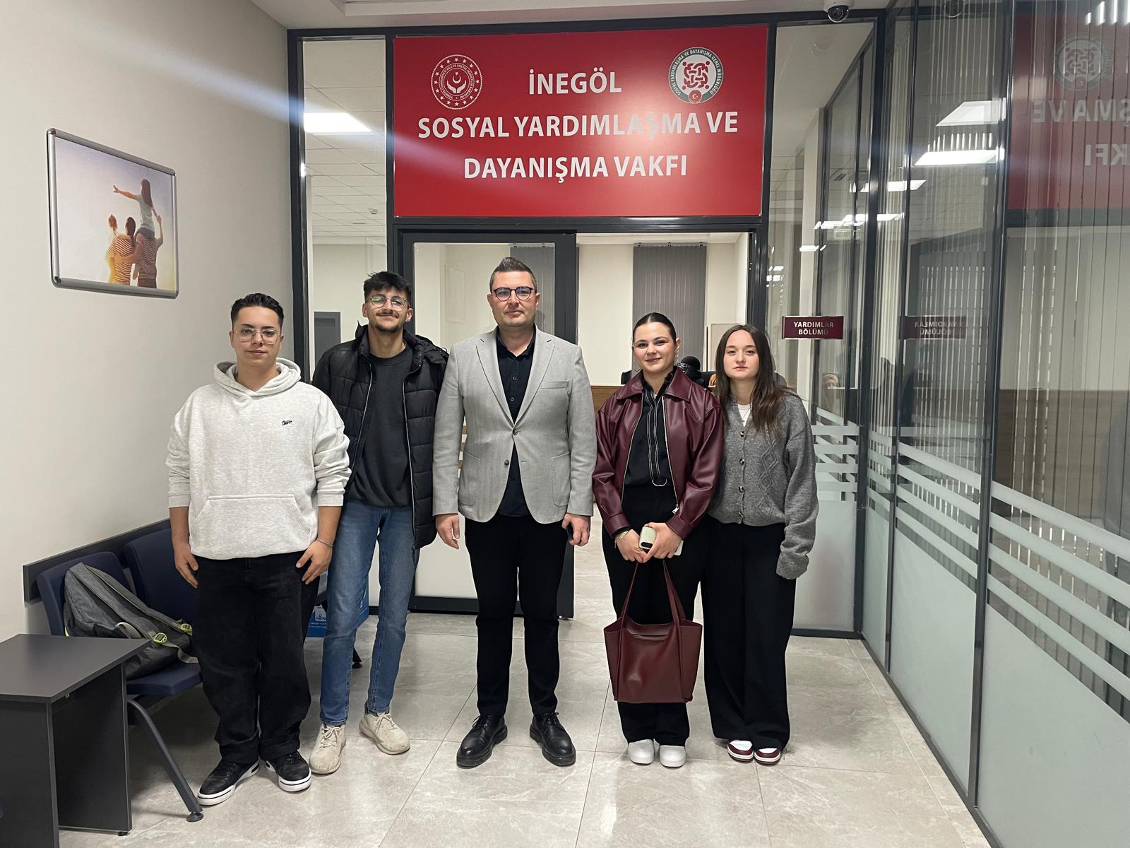 Bu kapsamda, İnegöl Sosyal Yardımlaşma ve Dayanışma Vakfı iş birliğiyle gerçekleştirilen etkinlikte, engelli bireyler ile yardıma ihtiyaç duyan yaşlılar ziyaret edilmiştir. Ziyaretler sırasında öğrenciler tarafından ev temizliklerine destek sağlanmış, bireylerin günlük yaşamlarını kolaylaştırmaya yönelik çeşitli yardımlarda bulunulmuştur.