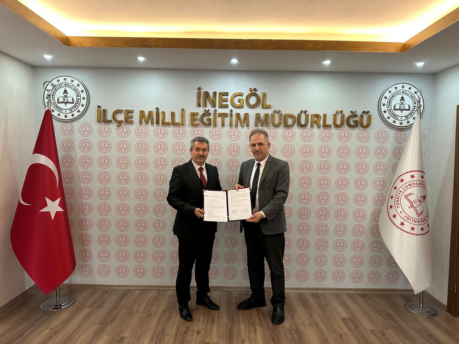İnegöl Meslek Yüksekokulu (MYO) ile İnegöl İlçe Milli Eğitim Müdürlüğü arasında, eğitim-öğretim faaliyetlerini zenginleştirmeyi ve kurumlar arası etkileşimi artırmayı amaçlayan kapsamlı bir iş birliği protokolü imzalandı.