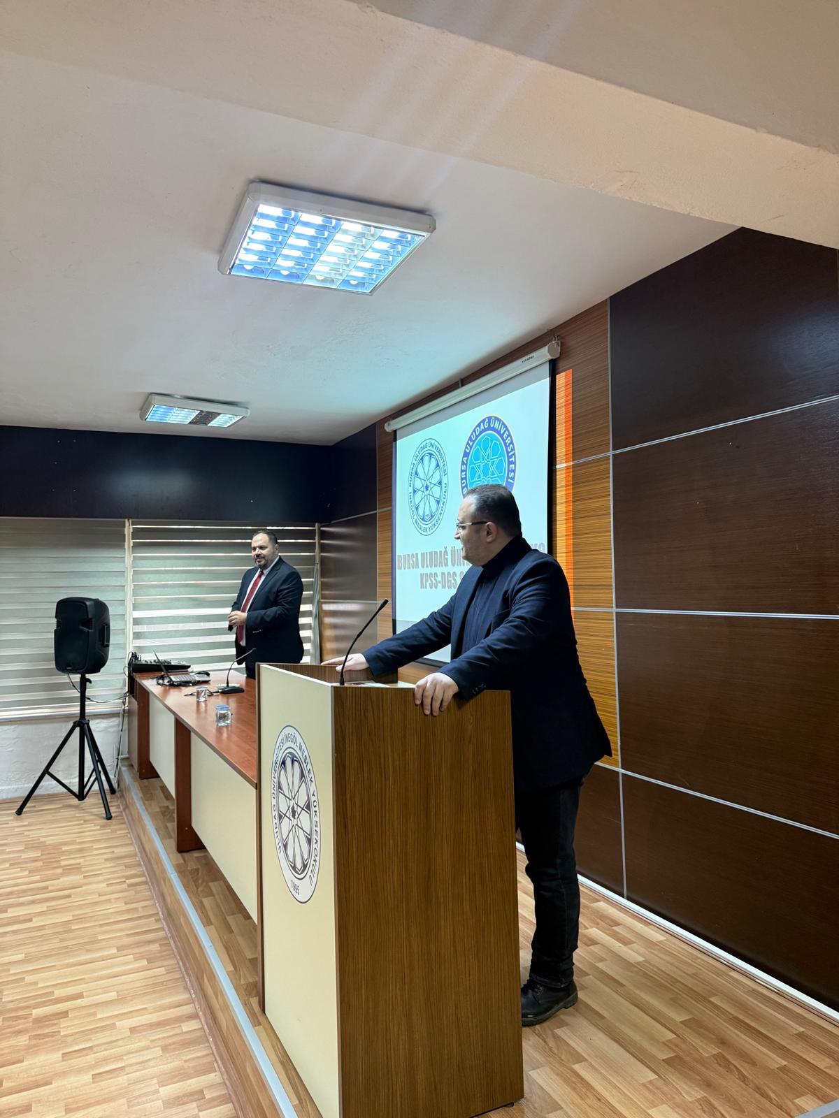 Kariyer planlama seminerinde konuşmacı olarak katılım sağlayan, Yönetim ve Organizasyon Bölümü İşletme Program Başkanı Öğr.Gör. Tolga Bahadır ŞİMŞEK; Kamu Personeli Seçme Sınavı ve Dikey Geçiş Sınav sistemleri hakkında detaylı bilgileri öğrencilerimize aktarmıştır. Öğrencilerimizin gelecekte kamu sektöründe atanabilecekleri kadrolar ve dikey geçiş sınavı ile lisans derecesinde geçiş yapabilecekleri bölümler hakkında bilgi verilmiştir.