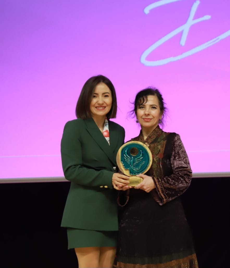 Etkinlik kapsamında sanat ve toplumsal farkındalık alanındaki katkıları nedeniyle Öğr. Gör. Senanur Dodevski’ye Kadın Dostu Markalar Farkındalık Ödülü takdim edildi.