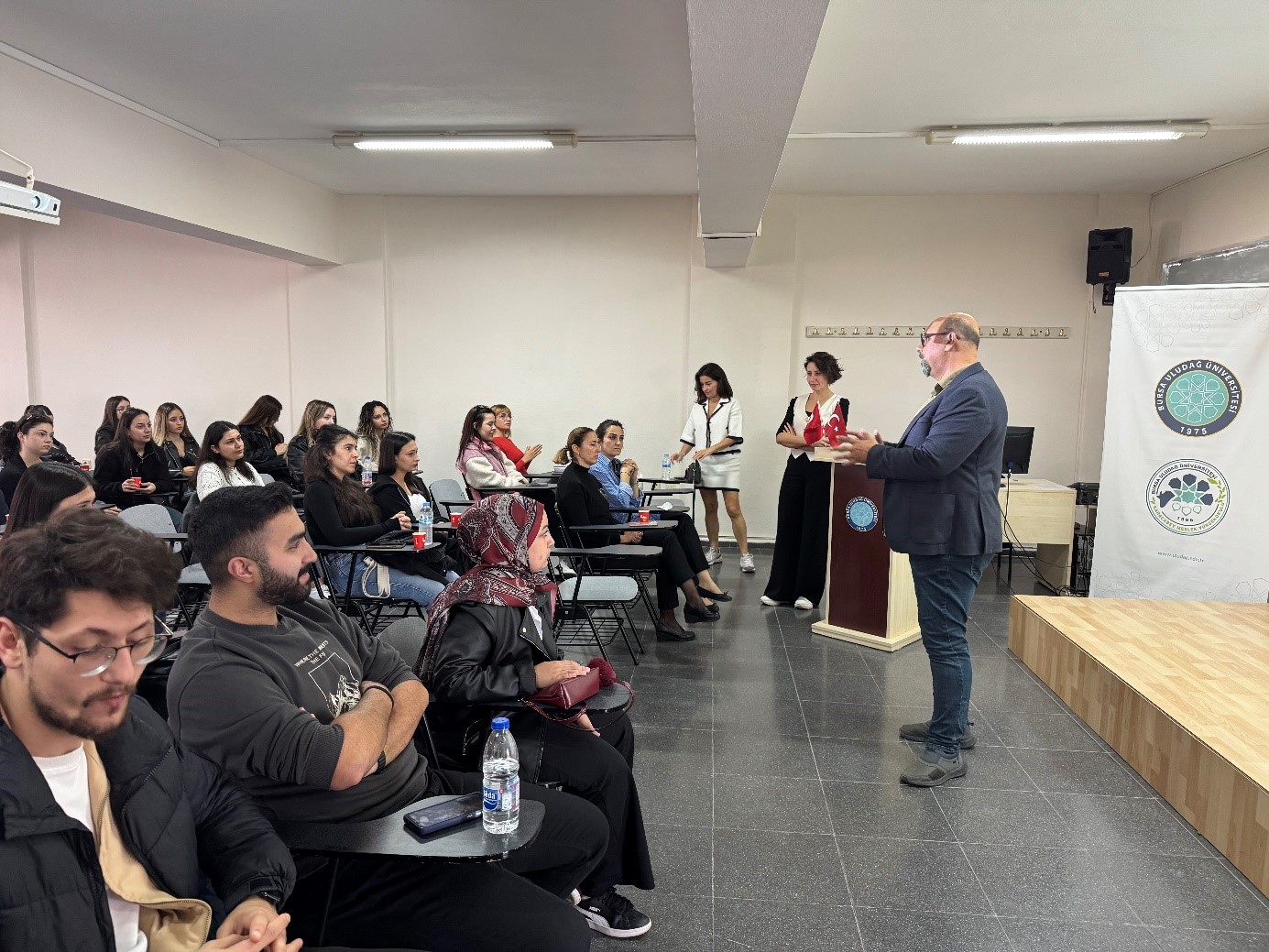 Leman Yurttaş tarafından yapılan sunumda sektörün güncel durumu, yemek ve catering hizmetlerinde kalite standartları, hijyen, gıda güvenliği, üretim süreçleri ve sürdürülebilirlik uygulamaları detaylı bir şekilde ele alındı. Ayrıca öğrencilerimize, sektör içerisinde üstlenebilecekleri görevler, çalışabilecekleri alanlar ve kariyer fırsatları hakkında ayrıntılı bilgiler verildi.