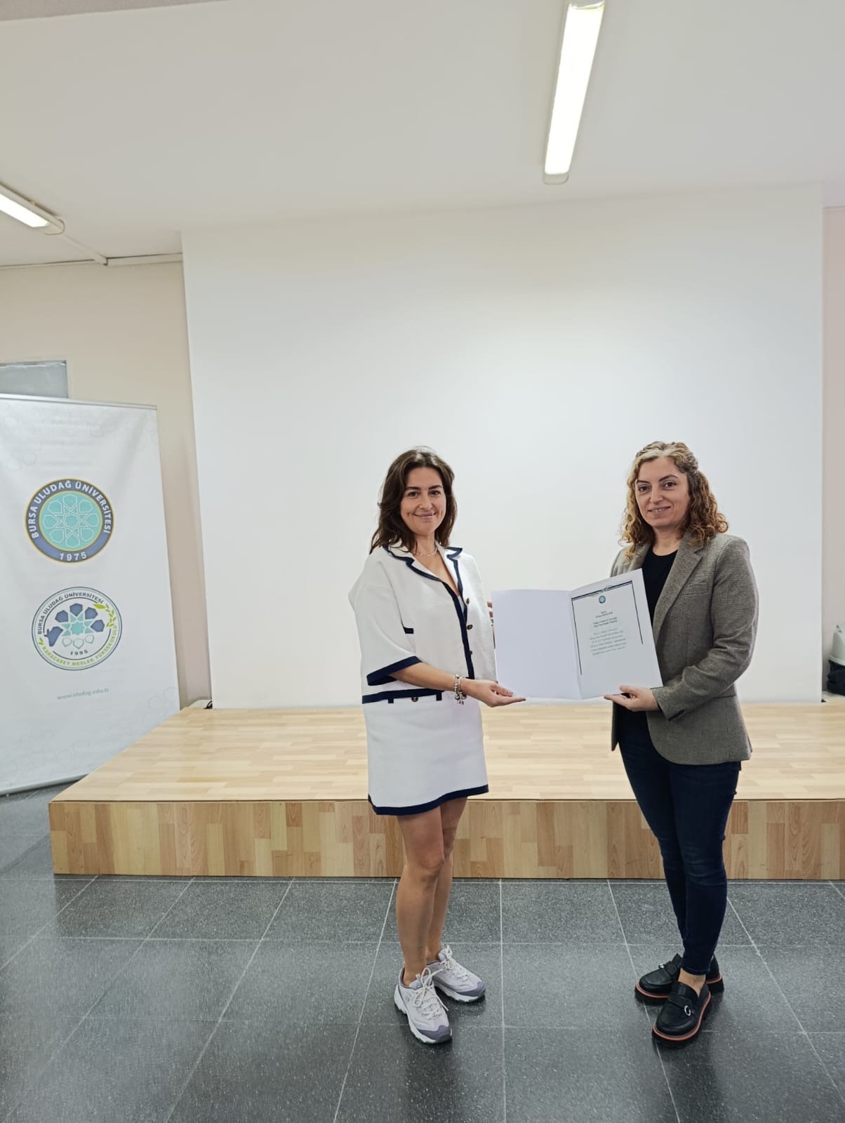 Program sonunda Öğr. Gör. Nihal KANAT ve Öğr. Gör. Dr. Kader ÇETİN tarafından konuklarımıza teşekkür belgeleri takdim edildi.